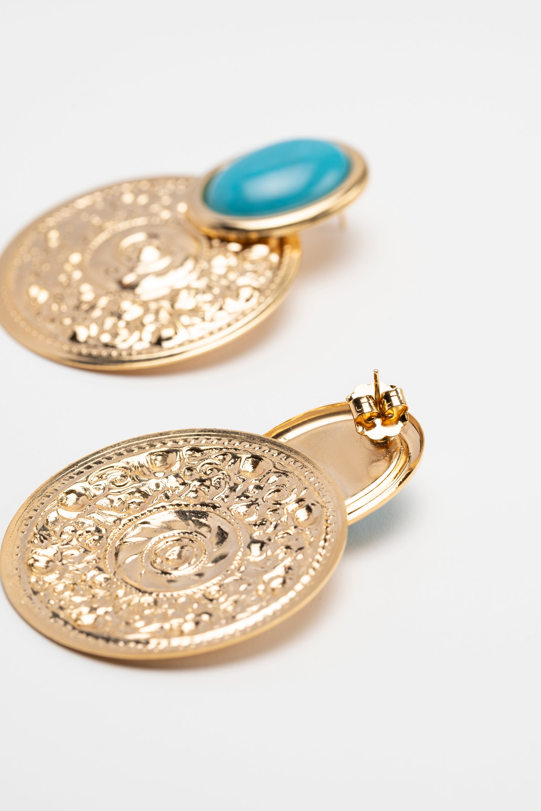 Orecchini Rosa dei Venti in metallo lavorato e ovale cabochon