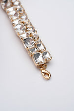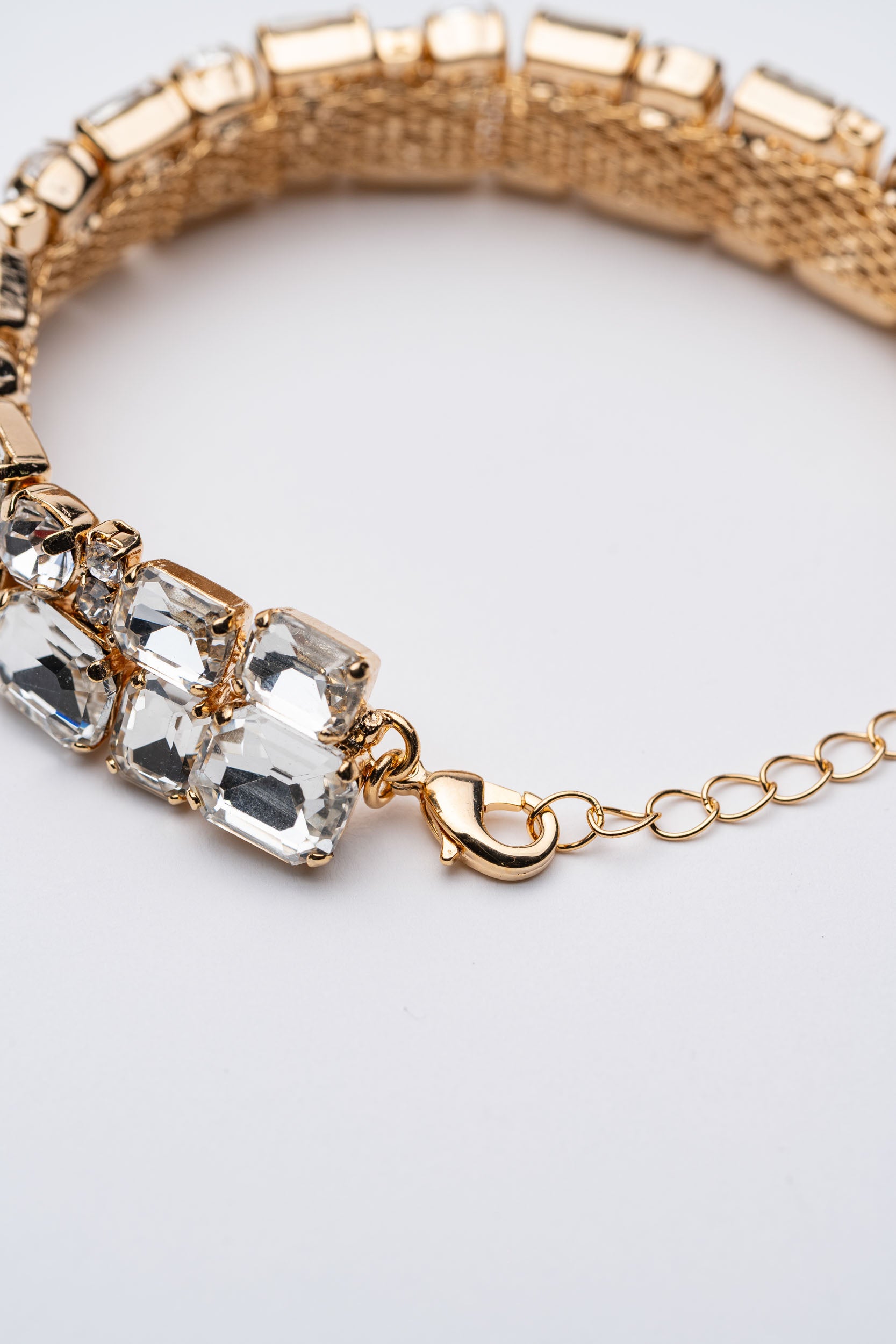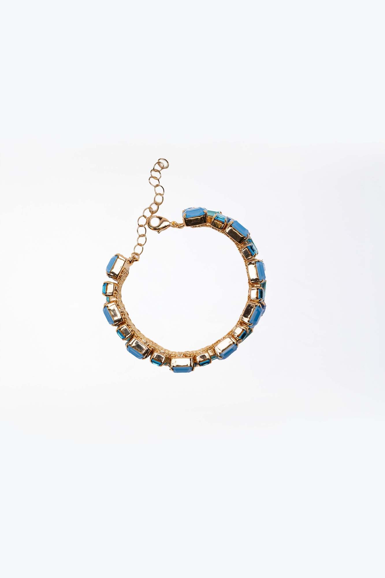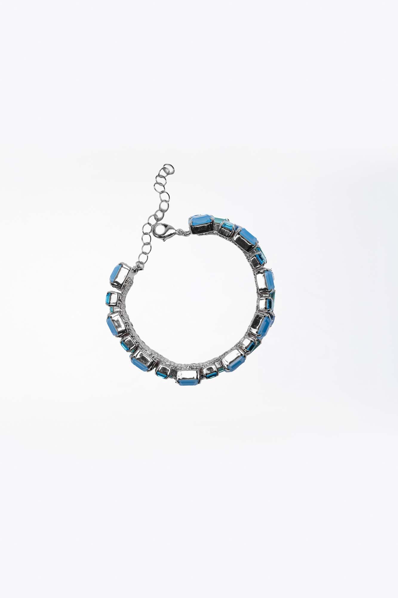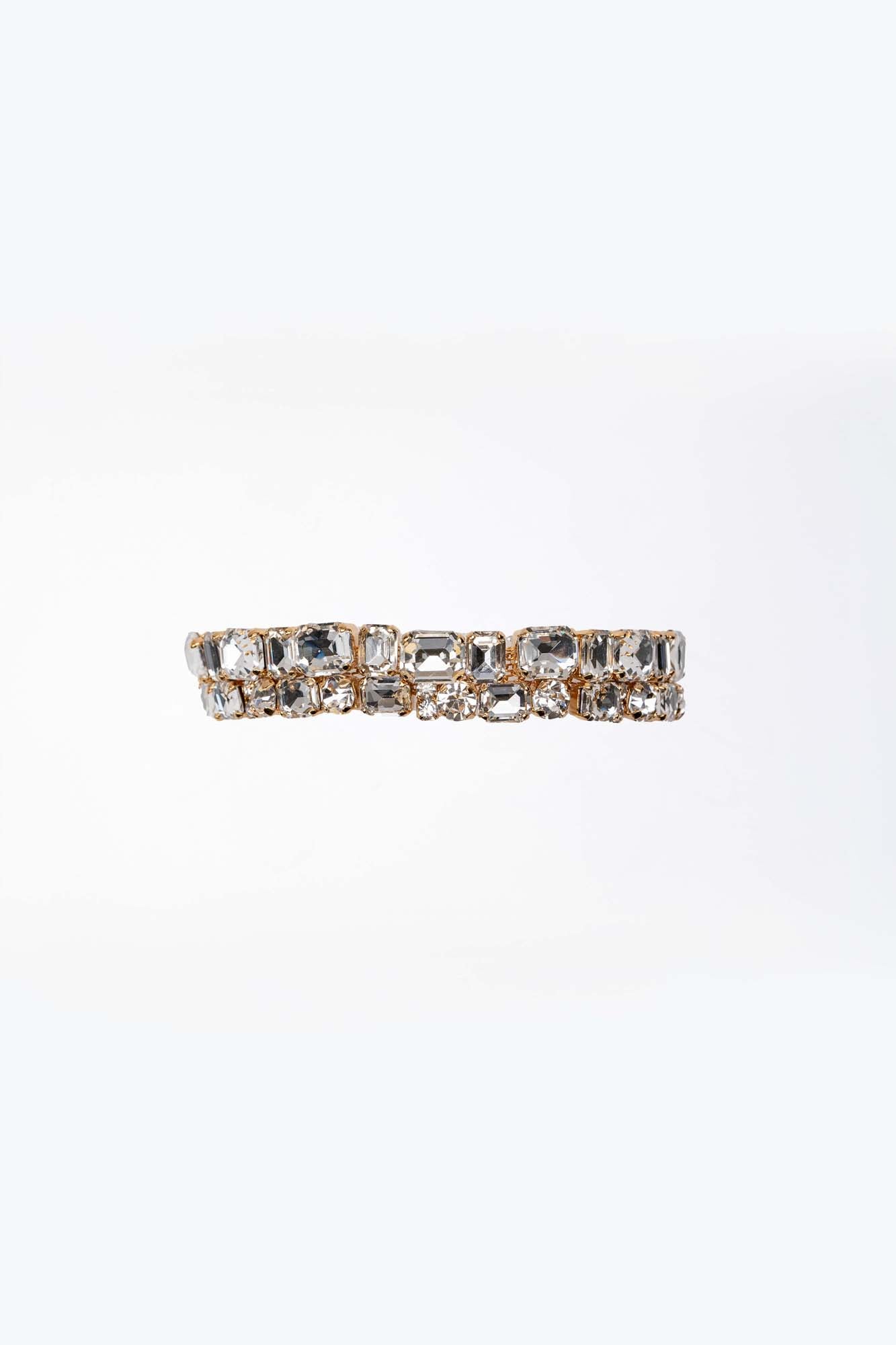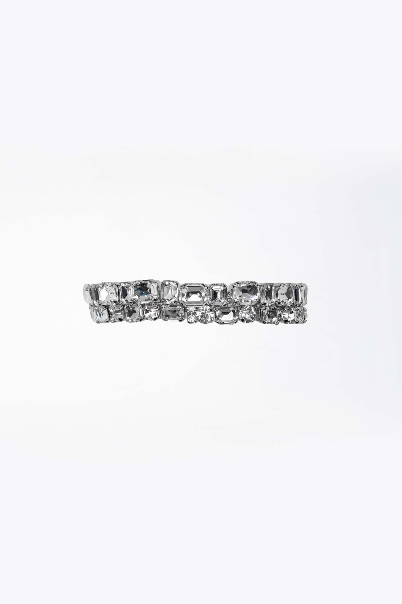 “Arcobaleno Imperfetto” è un bracciale che gioca con le sfumature, combinando con maestria cristalli dalle tonalità fucsia, ametista, giallo miele e champagne. I tagli rettangolari e rotondi si alternano creando una composizione geometrica e vibrante, come una scacchiera di luce in movimento.