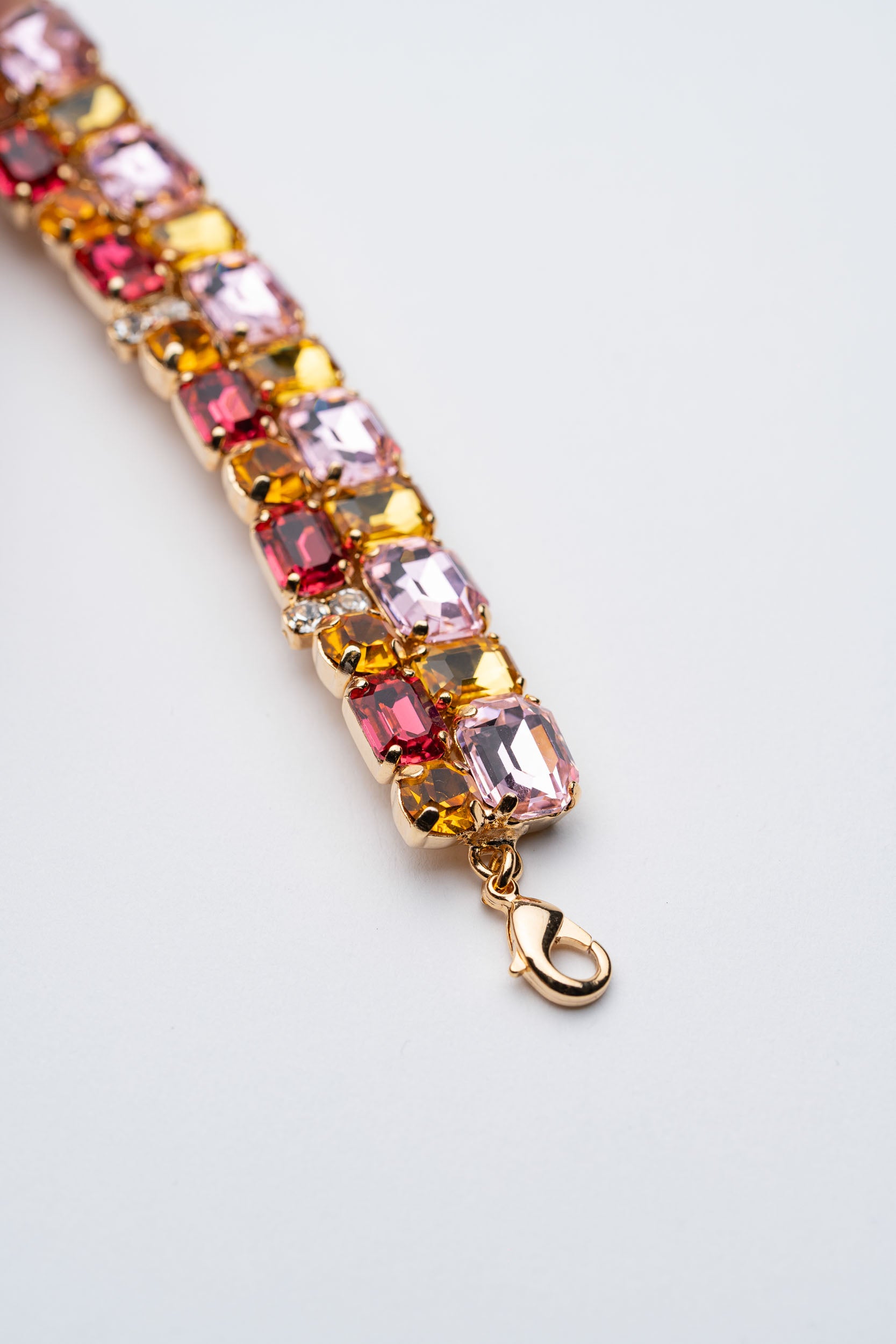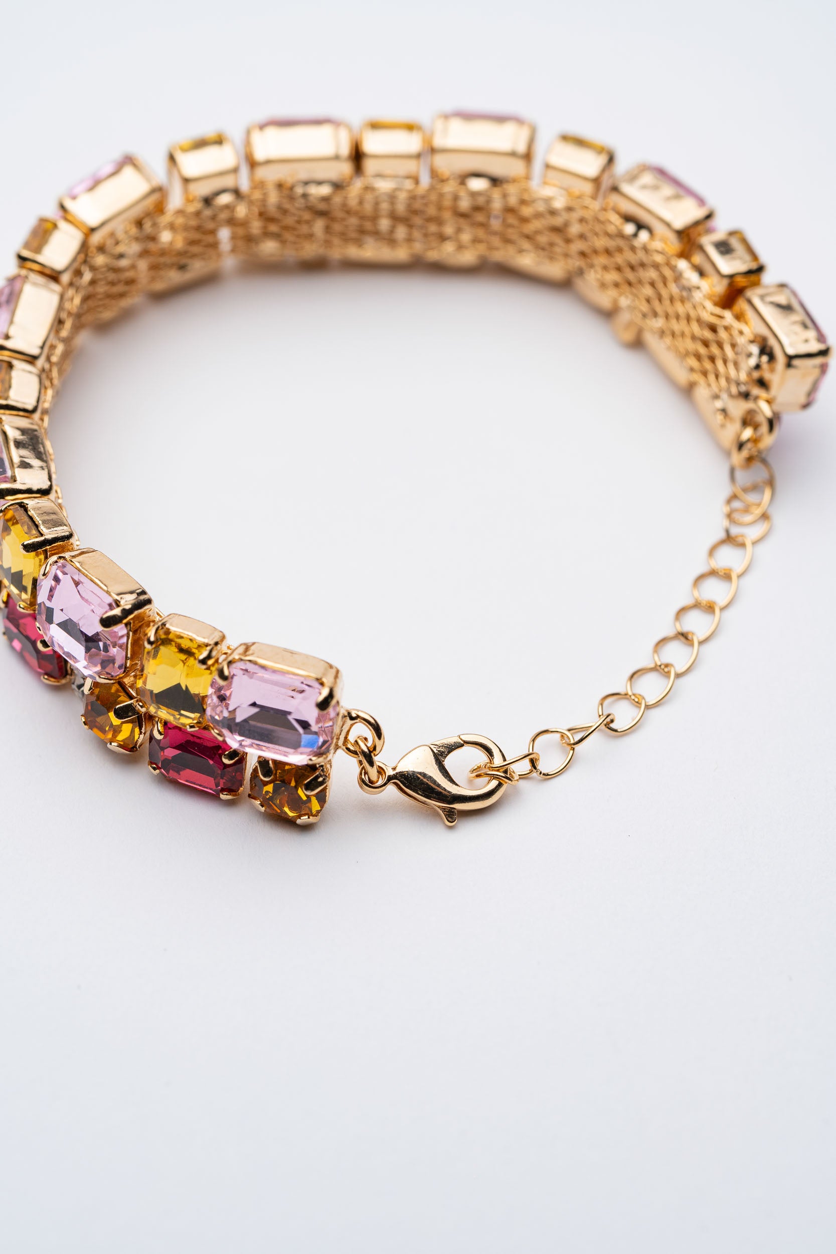 Bracciale con cristalli multicolore: fucsia, ametista, giallo, champagne