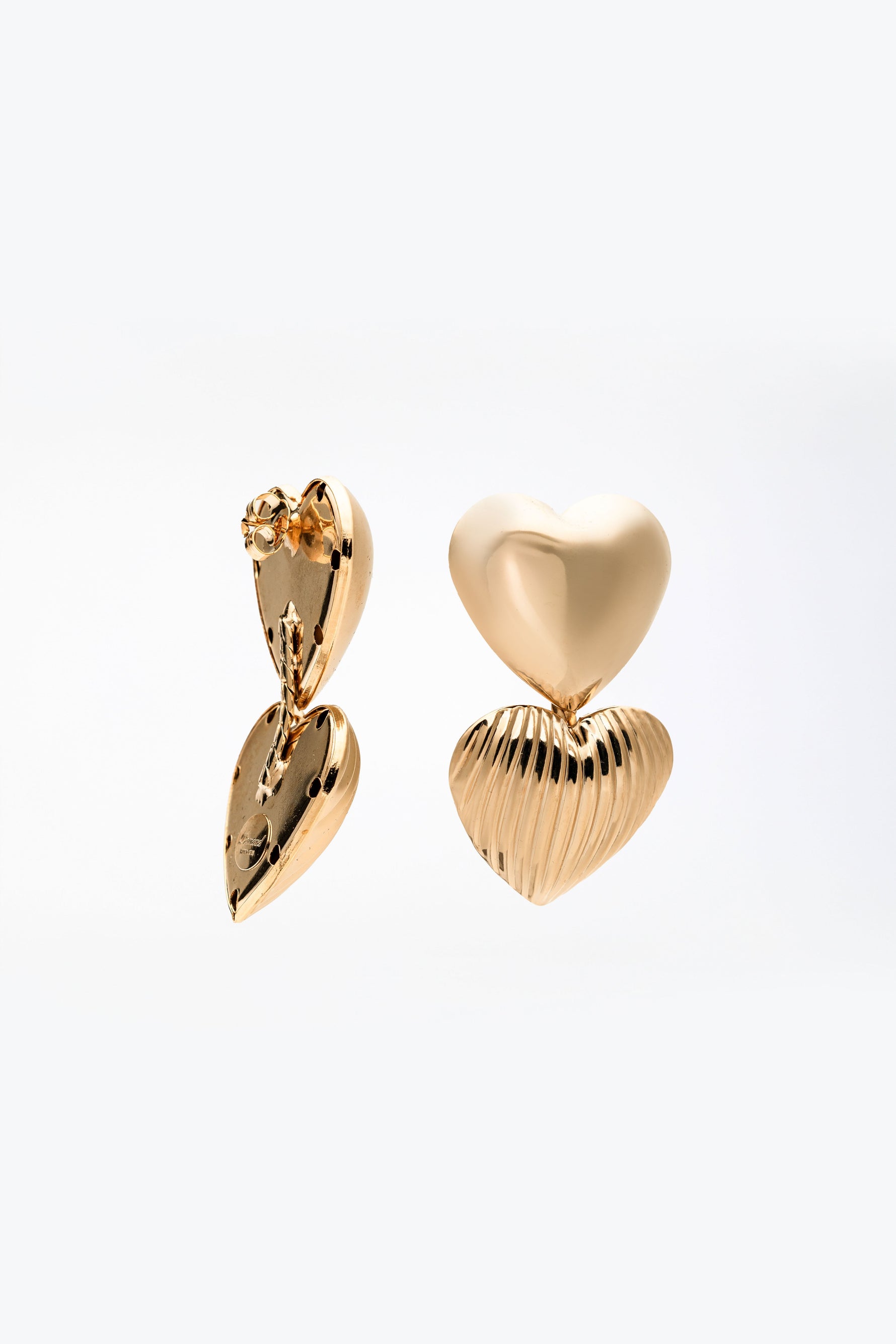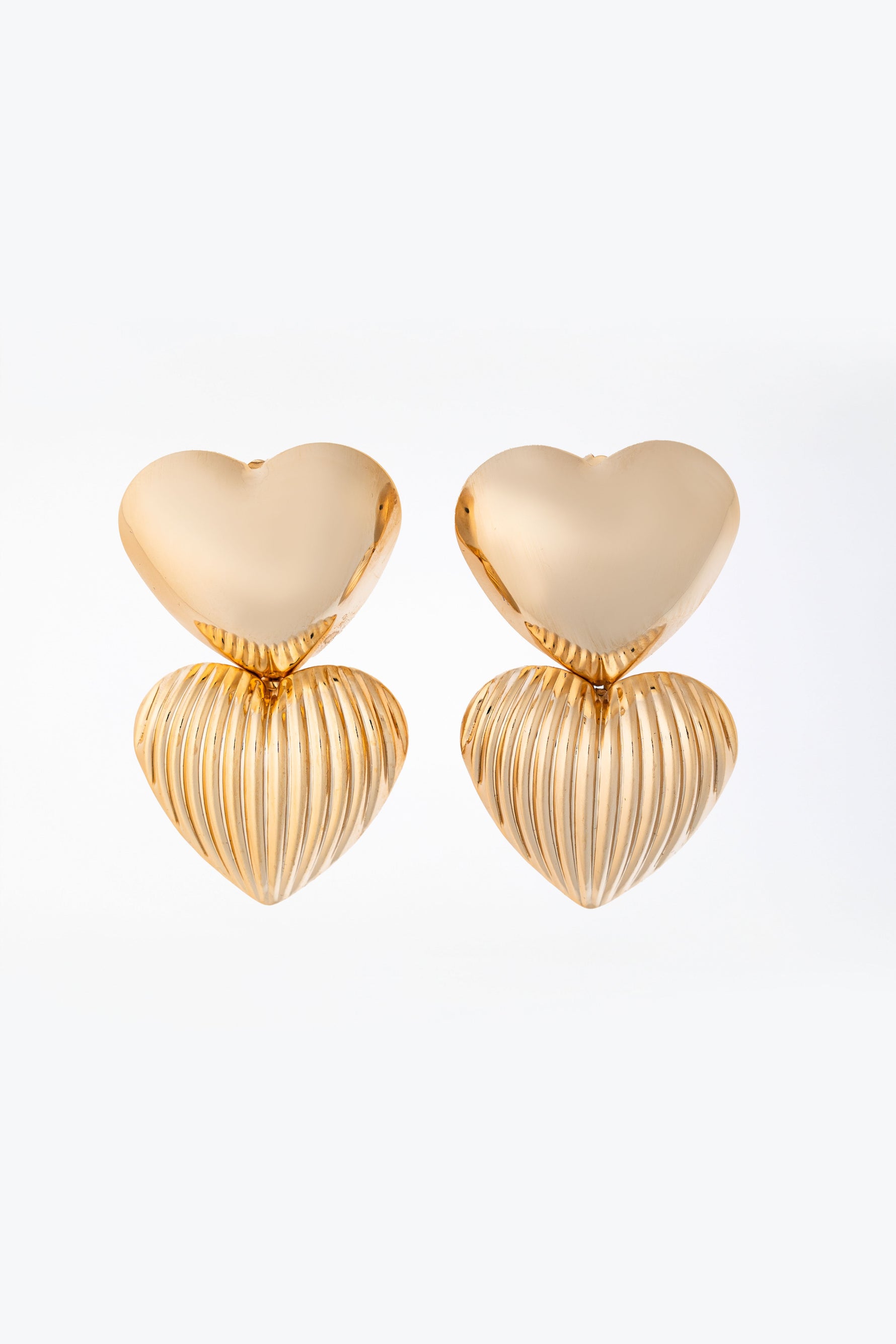 Orecchini Doppio Cuore in Ottone Placcato Oro con Design Elegante e Romantico Flaminia