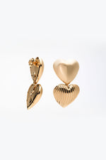 Orecchini romantici ed eleganti con una doppia forma a cuore, uno liscio e uno striato, che aggiungono un tocco di raffinatezza e dolcezza al tuo look. Perfetti per chi cerca un gioiello che unisce modernità e simbolismo.