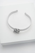 Bracciale rigido regolabile in oro lucido con dettaglio di cristalli, personalizzabile con qualsiasi lettera: un gesto romantico e luminoso da portare sempre con sé.