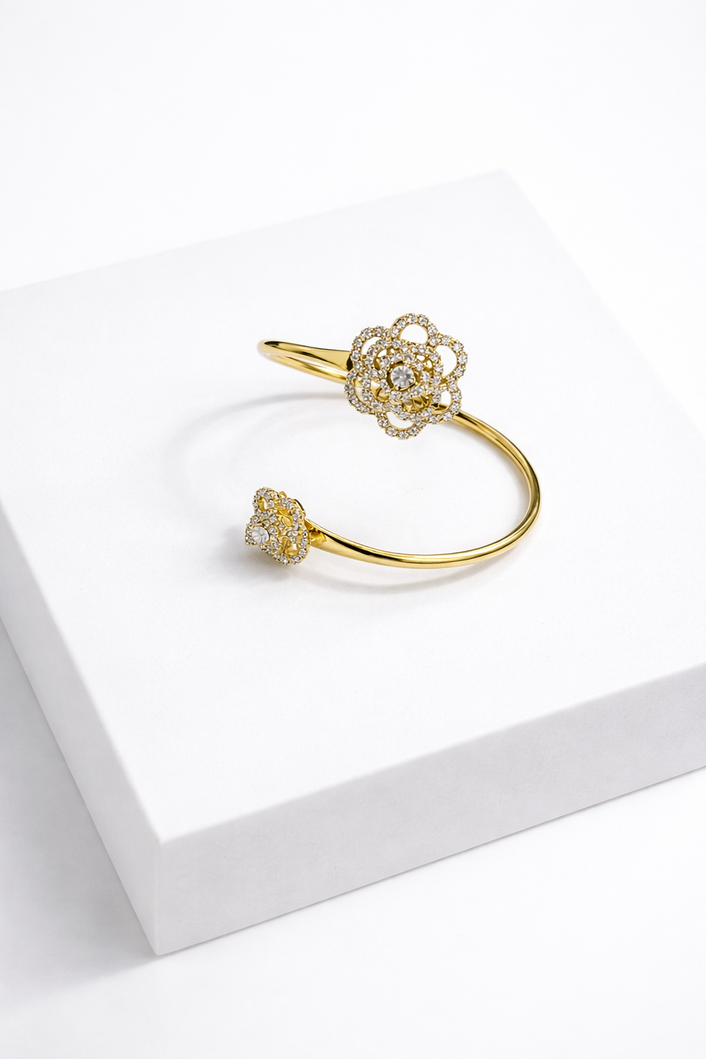 Bracciale rigido gold con doppia rosa impreziosita da strass crystal.