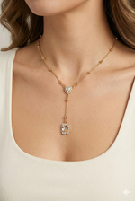 Realizzata con una catena dorata a sfere, elegante e luminosa, presenta al centro un raffinato cuore in strass che illumina il décolleté con delicatezza.