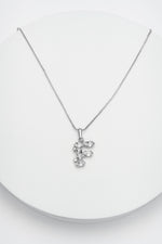 Il pendente, a forma di iniziale, è realizzato con cristalli taglio marquise e strass brillanti che disegnano la lettera con un effetto prezioso e luminoso.