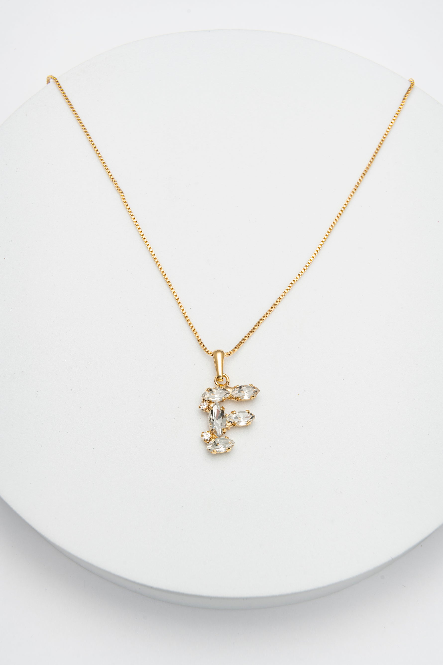 Collana dorata con elegante catena veneziana e pendente a forma di iniziale realizzato in strass luminosi. Un gioiello personalizzabile, raffinato e brillante.