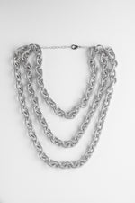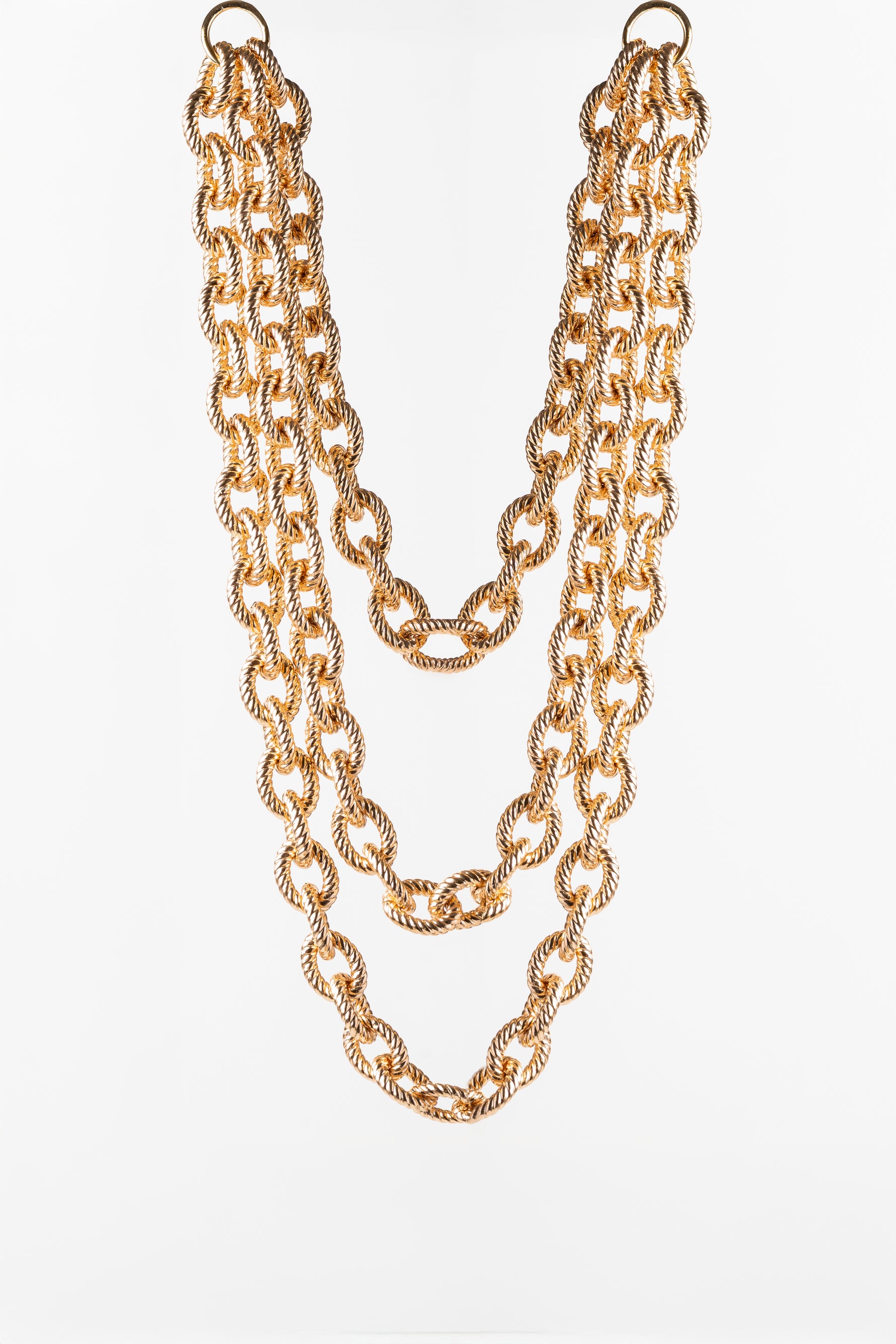 La collana maglia ovale rigata si distingue per la sua lavorazione dettagliata che valorizza ogni singolo anello, creando un effetto tridimensionale elegante e raffinato.