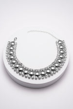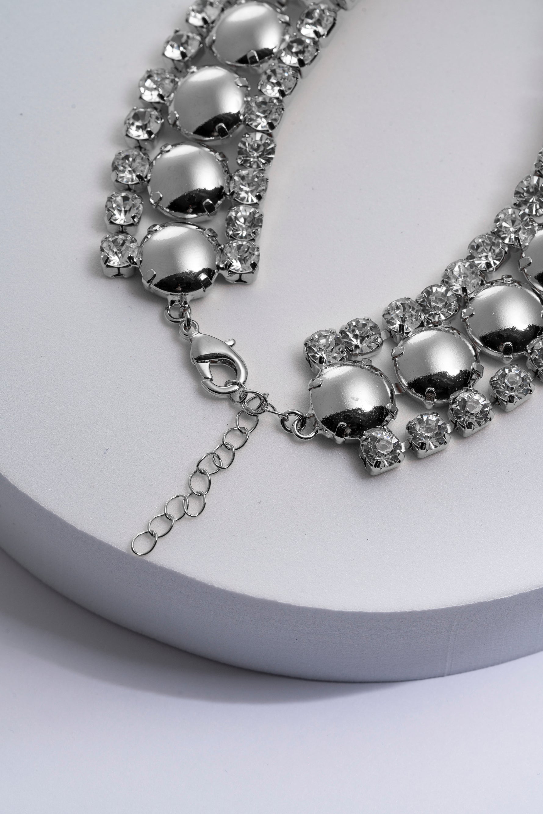 La collana Astra è un gioiello che cattura l’essenza del firmamento: una costellazione di cristalli che brillano come stelle incastonate nell’oro. La sua struttura geometrica, arricchita da sfere dorate e luminose pietre bianche, crea un gioco di riflessi che esalta il collo con eleganza e carattere.