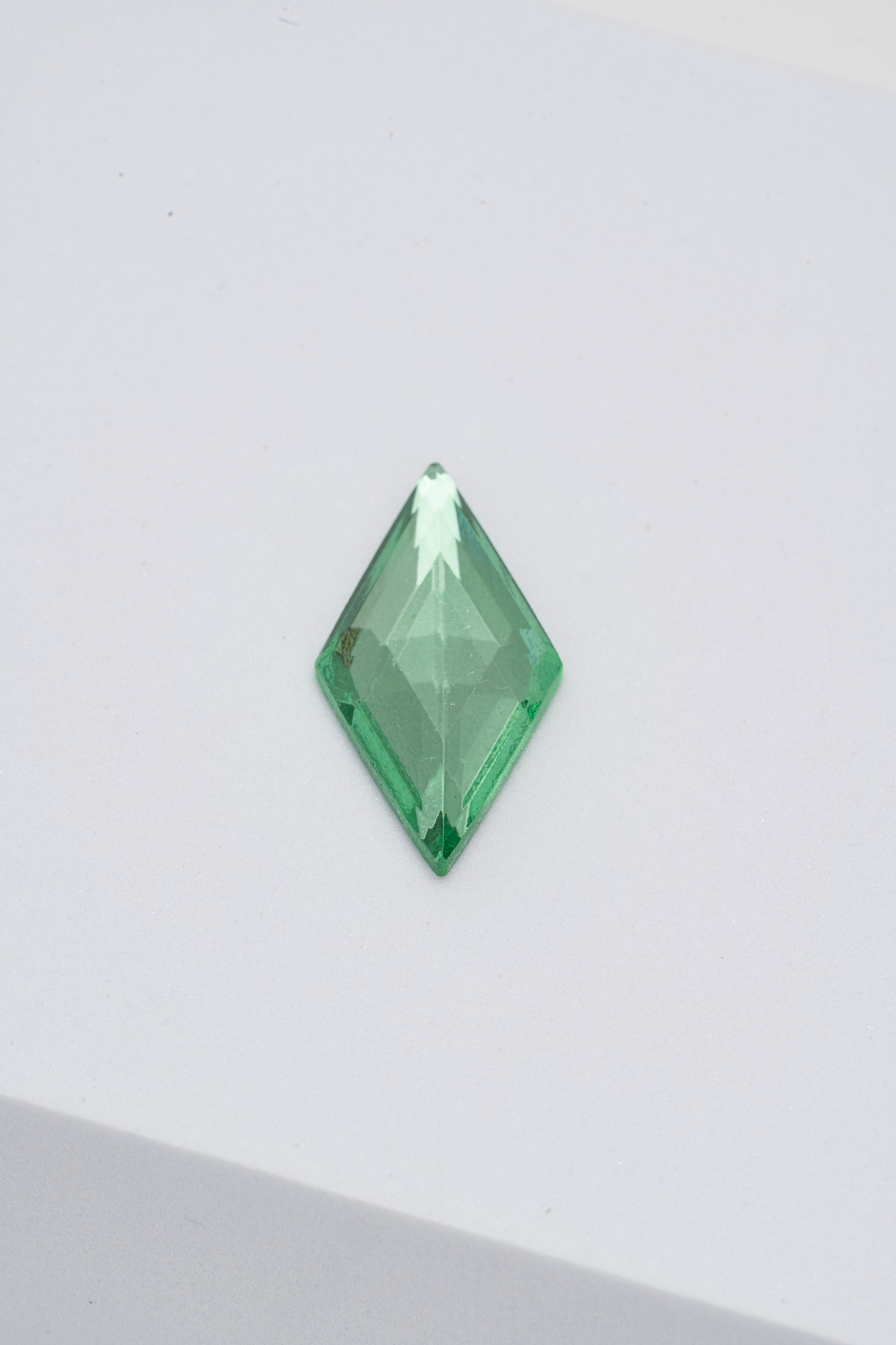 Materiali: Lega dorata e cristalli effetto smeraldo.