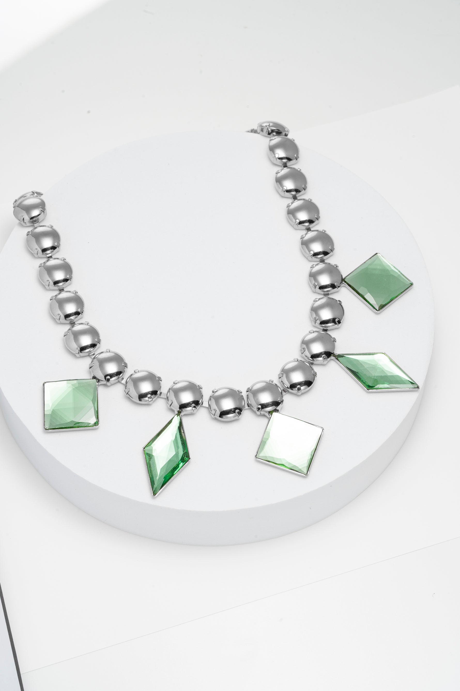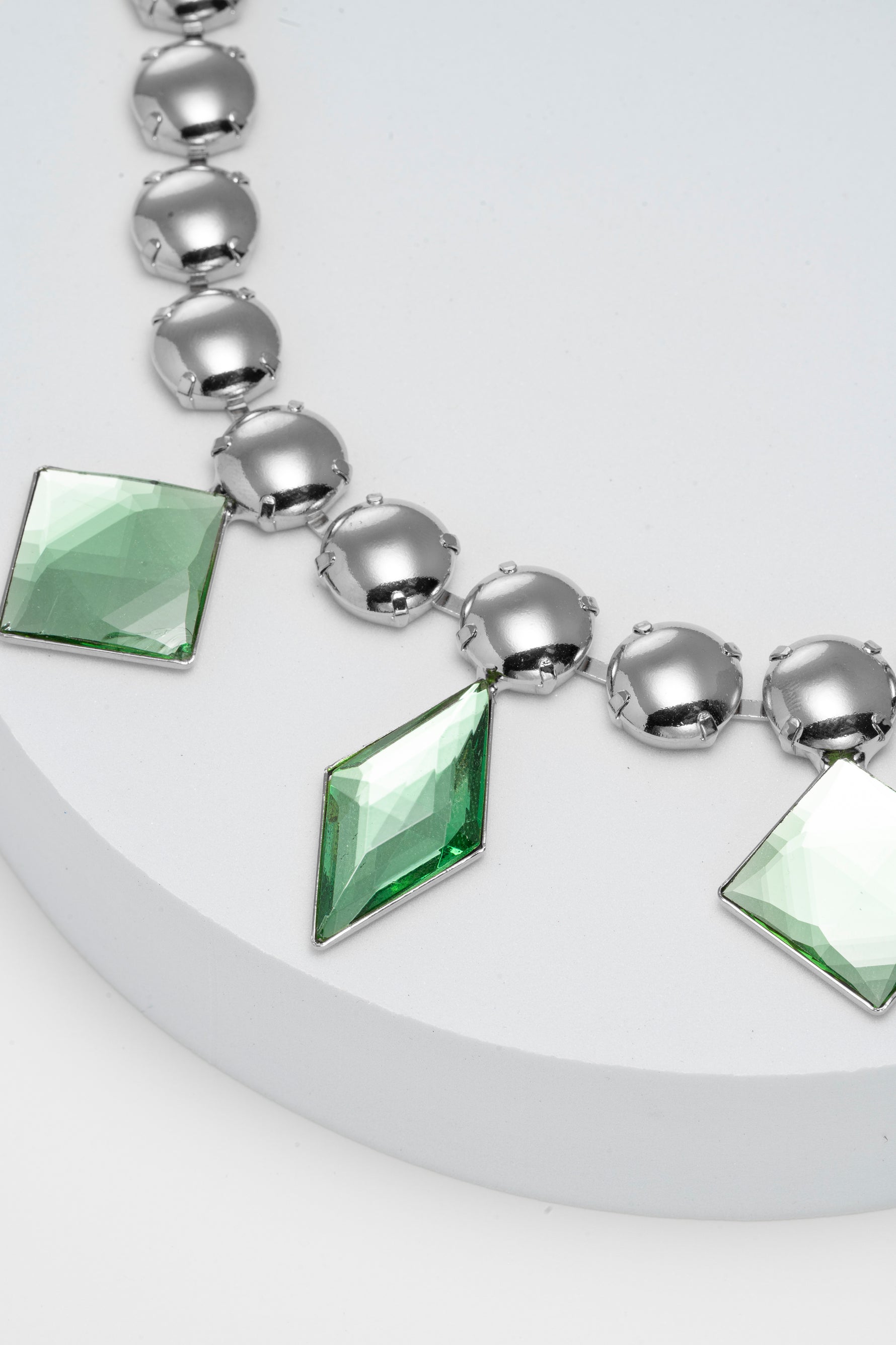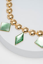 Collana con Cristalli Geometrici e Maglie Dorate Verde Imperiale