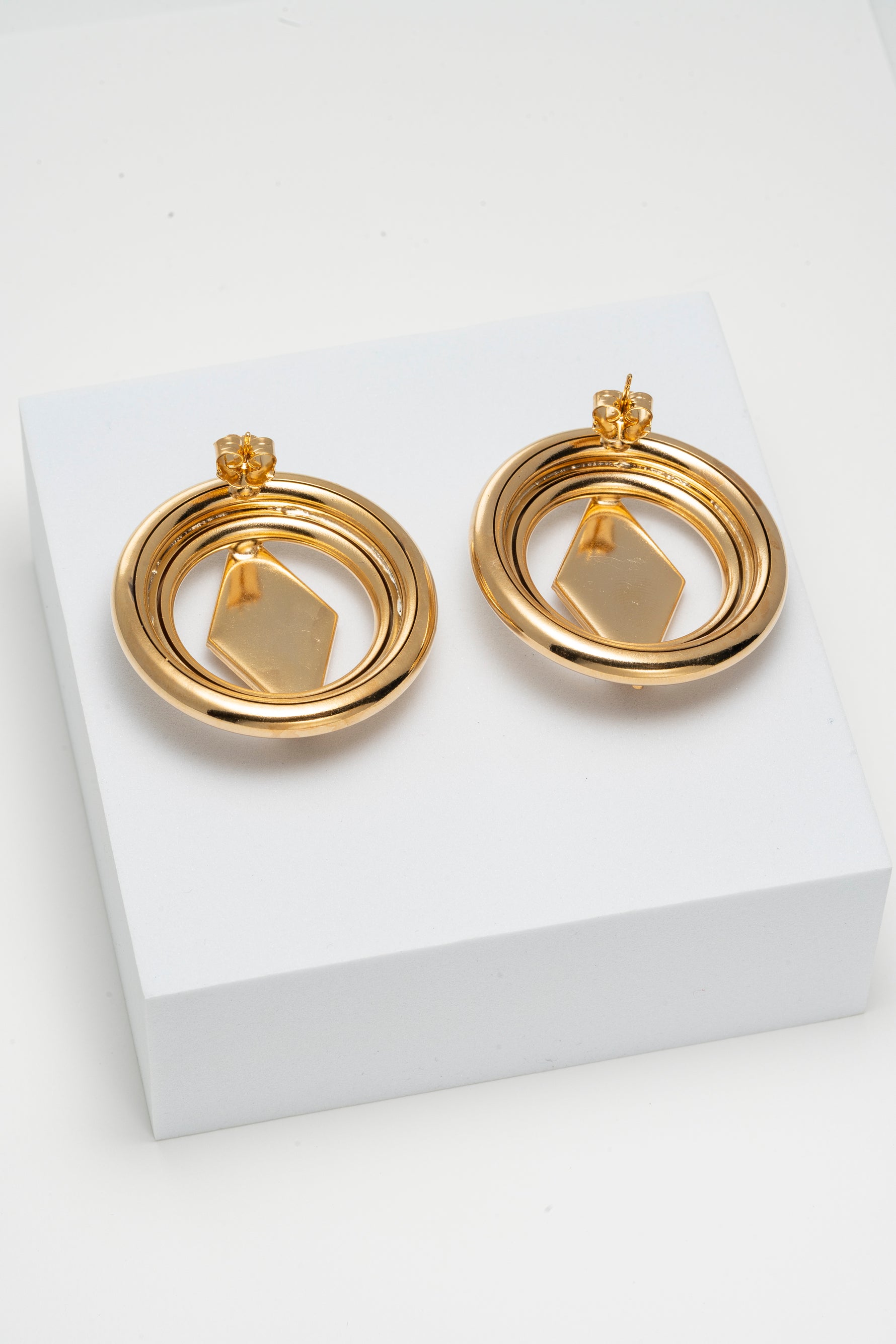 Orecchini Geometrici con Luce Dorata e Cristallo a Rombo Halo Shine