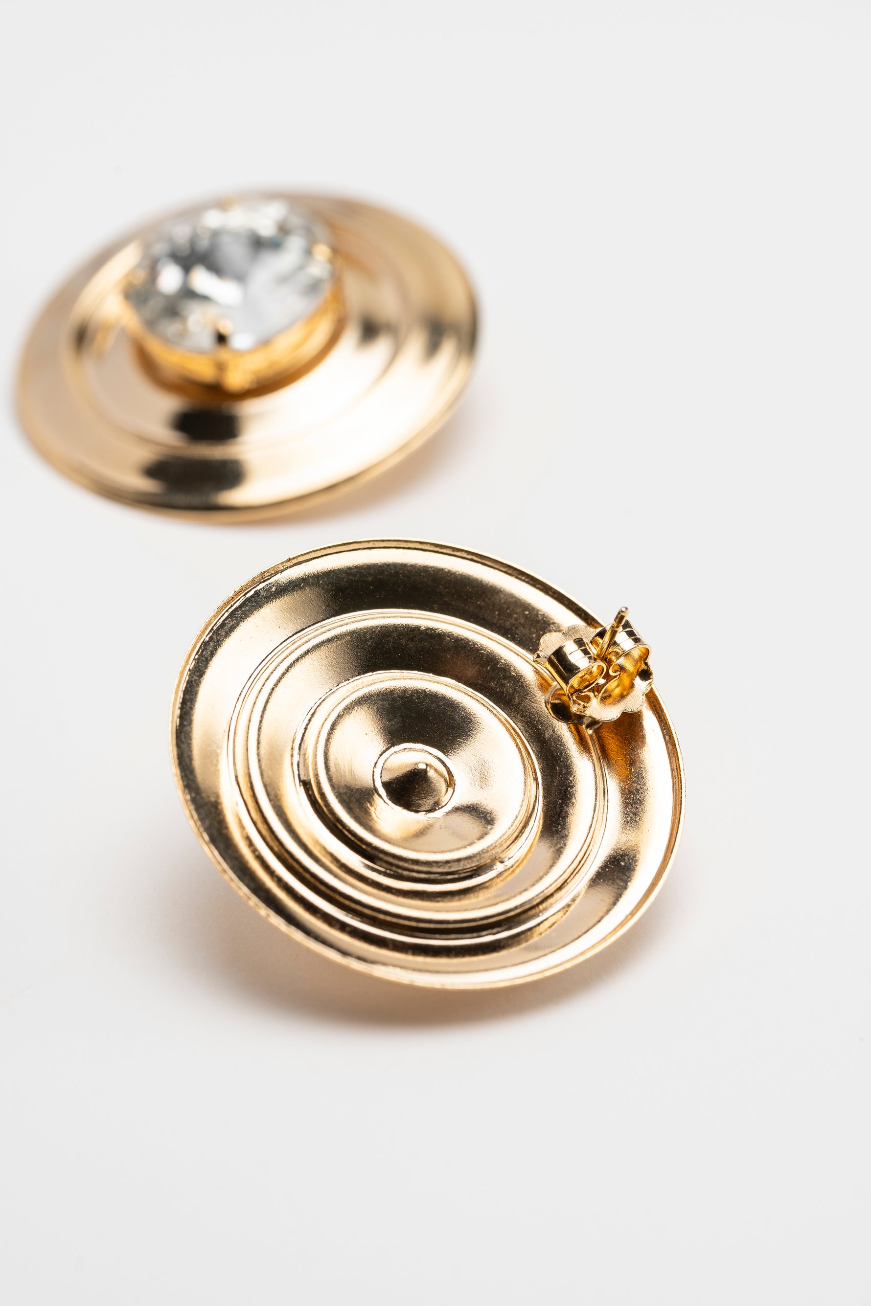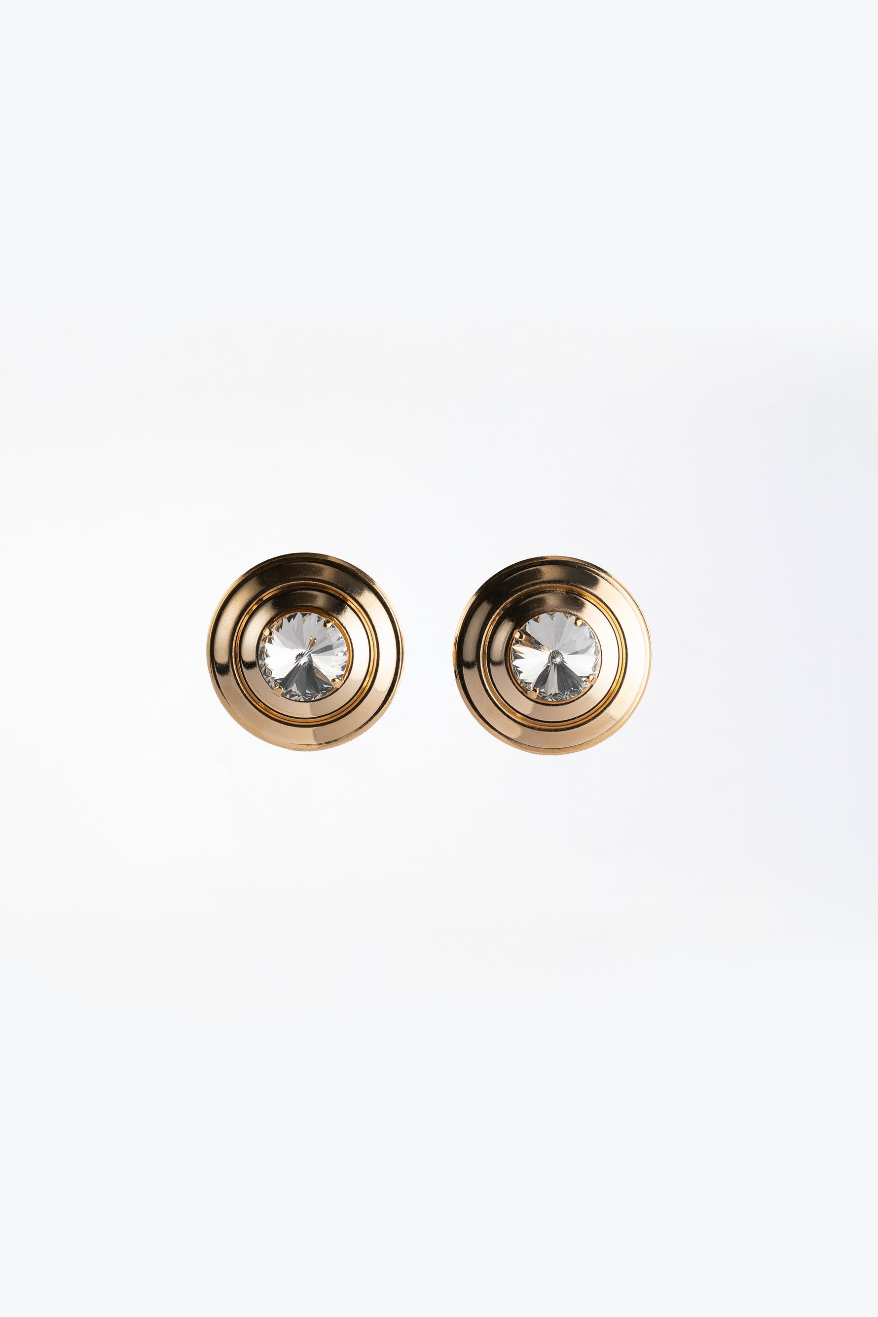 Orecchini Bottone in Metallo con Pietra Centrale Riflesso Solare