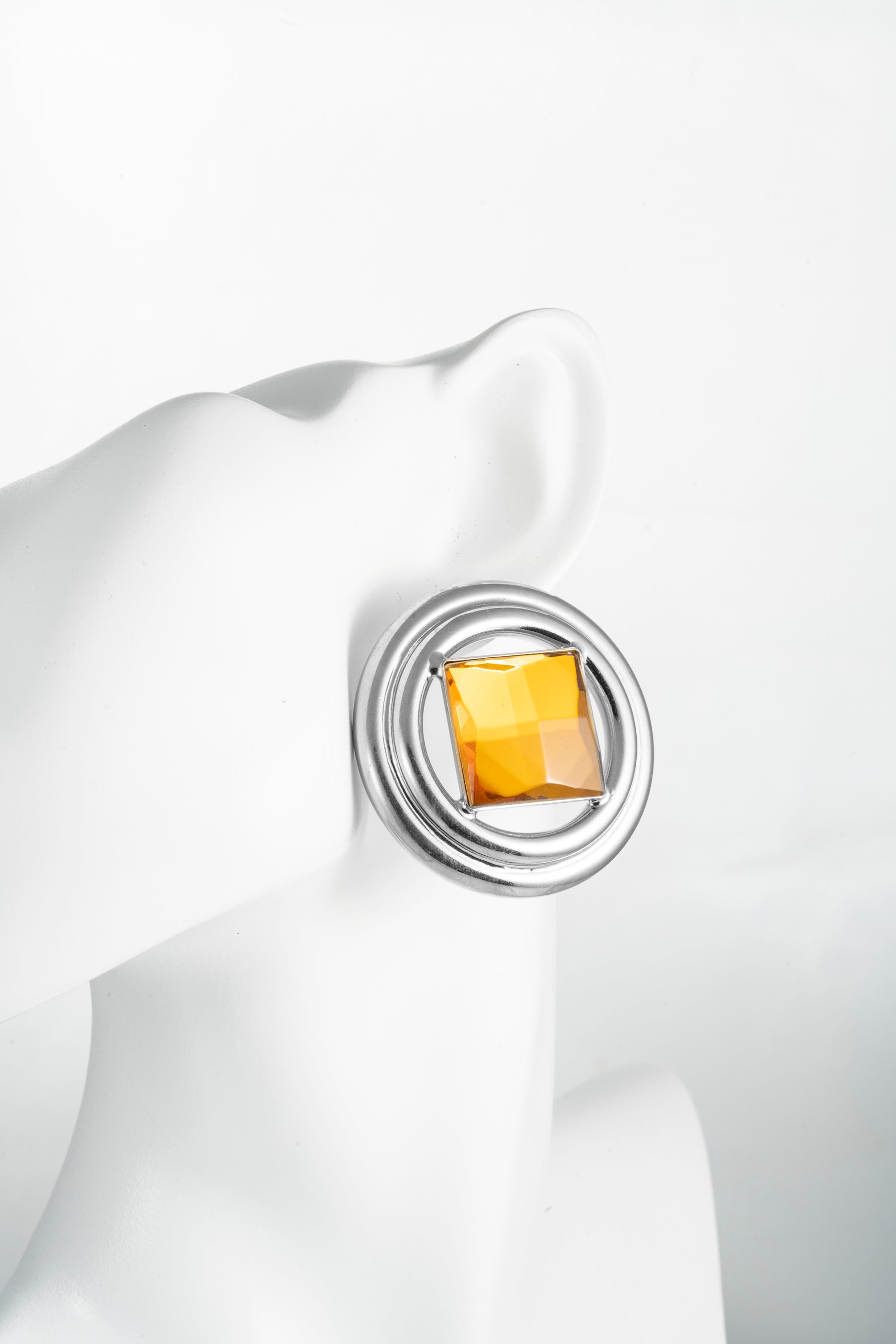 Un design audace e geometrico che richiama i movimenti celesti: Golden Orbit è un paio di orecchini dal forte impatto visivo, perfetto per chi ama distinguersi. Il cerchio dorato abbraccia una pietra sfaccettata color topazio a forma di piramide quadrata, creando un contrasto dinamico e luminoso. Il risultato? Un accessorio dallo stile contemporaneo, con un tocco rétro che valorizza qualsiasi look, dal minimal al più sofisticato.