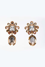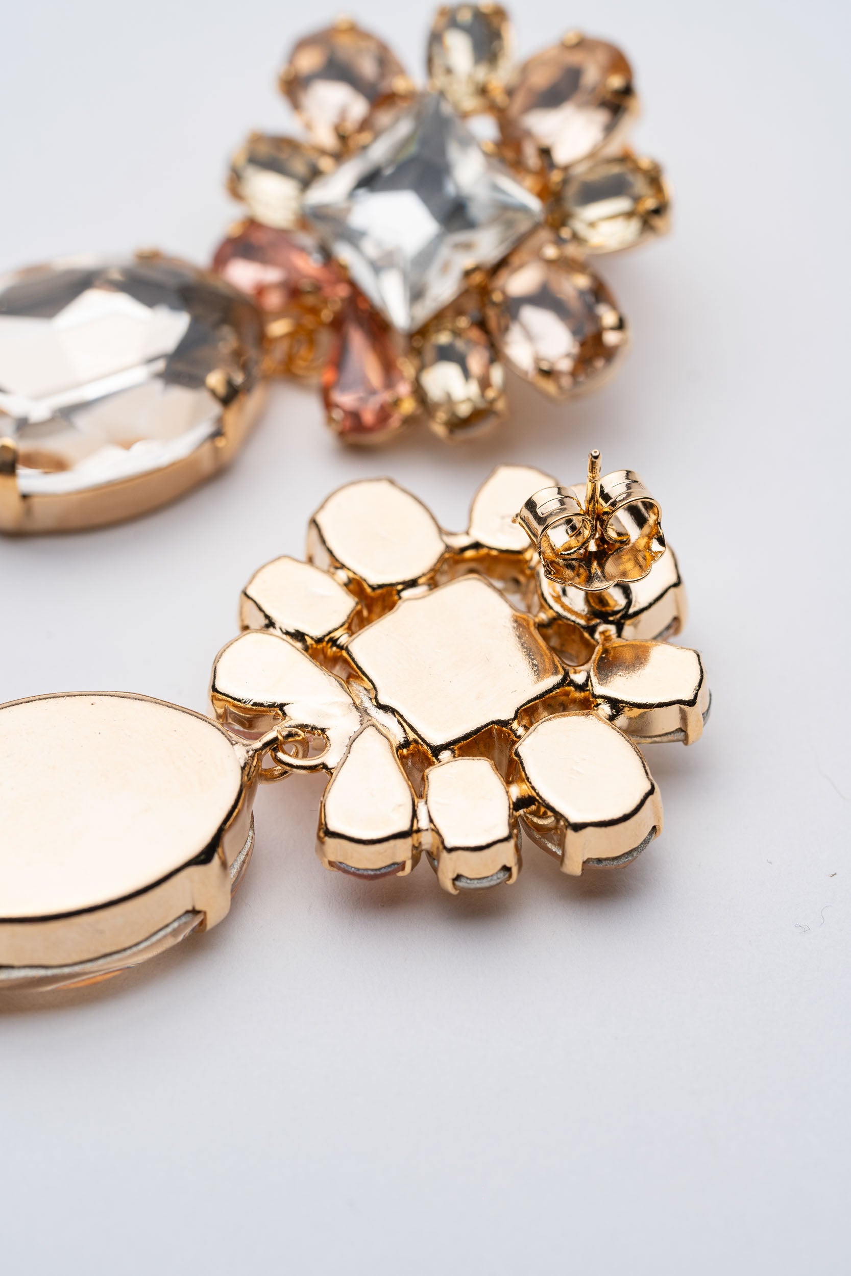 Gli orecchini "Giardino di Cristallo" sono un'esplosione di luminosità e raffinatezza. La parte superiore è decorata con cristalli blu e verdi, che formano una composizione floreale elegante, mentre il cristallo centrale blu, più grande, pende delicatamente creando un movimento affascinante. Il mix di colori vivaci e la finitura dorata li rende ideali per occasioni speciali, matrimoni o eventi serali. Questi orecchini donano un tocco di freschezza e originalità, perfetti per chi desidera aggiungere una nota di eleganza e colore al proprio look.