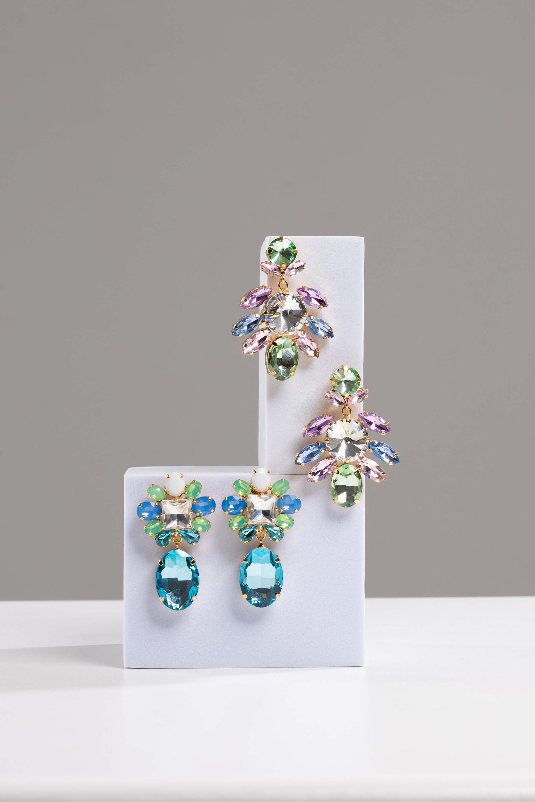 Orecchini Giardino di Cristallo con pietre Blu e Verdi