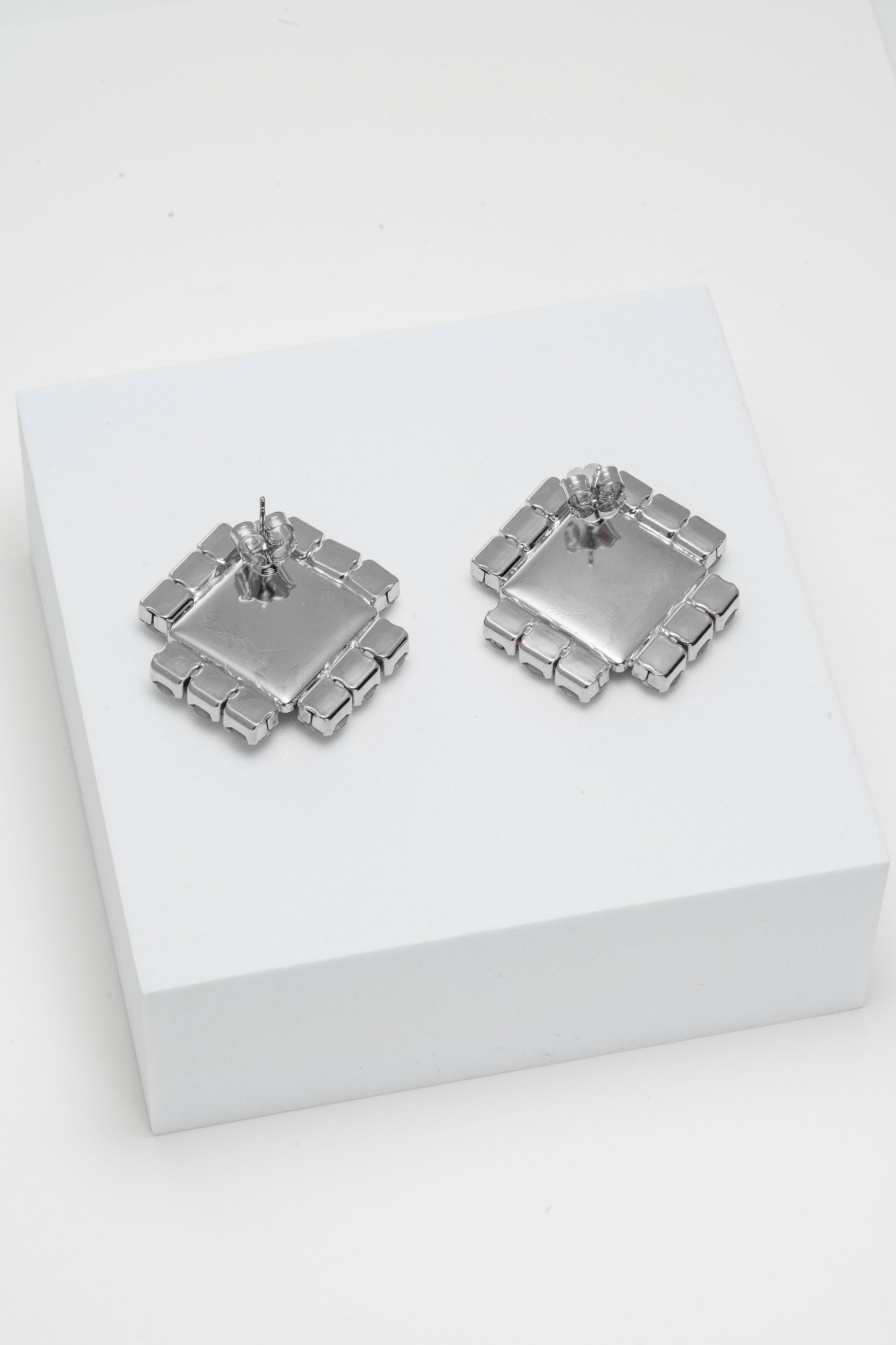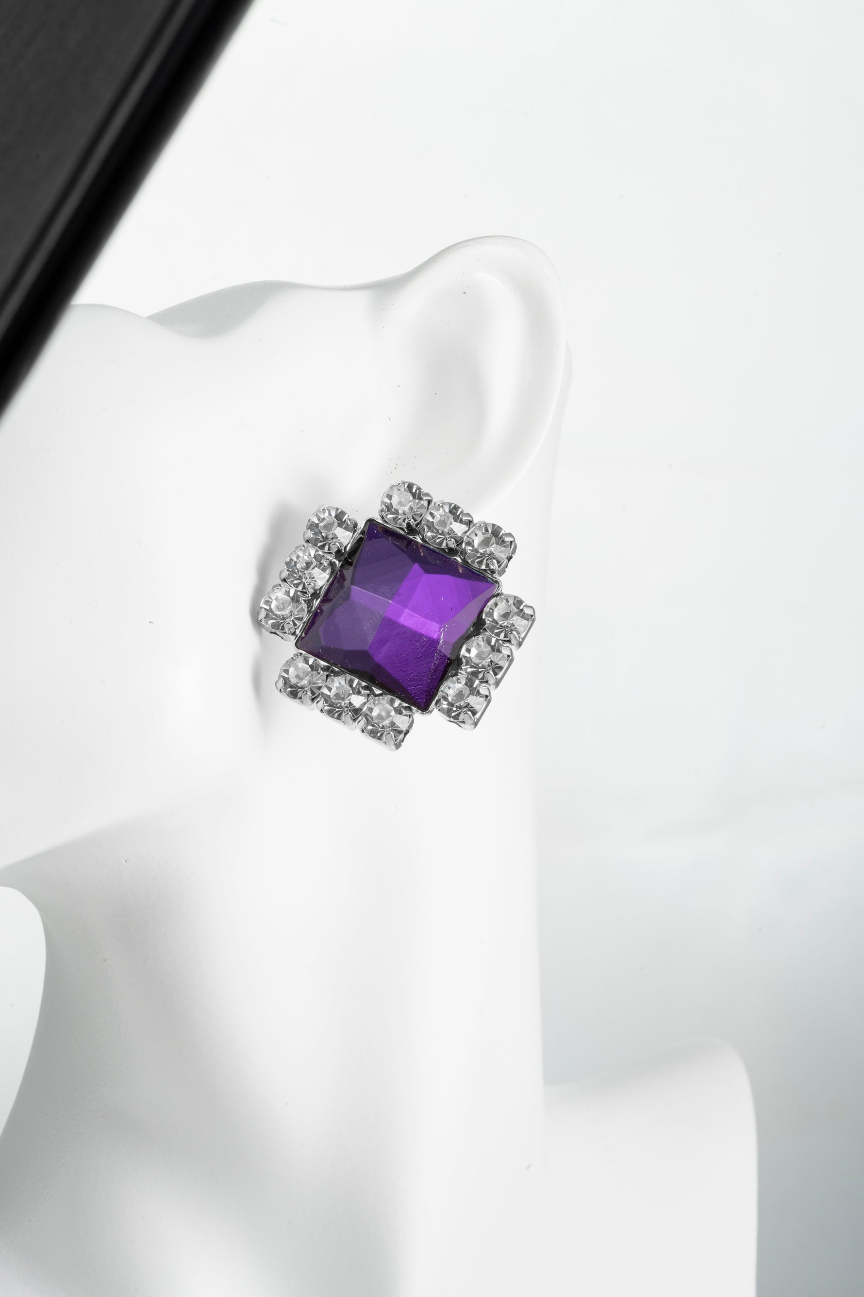 Un'eleganza decisa e brillante prende forma in questi orecchini squadrati, impreziositi da una pietra viola intensa incastonata al centro, contornata da una cornice di luminosi cristalli. Il design geometrico e i contrasti cromatici regalano un fascino regale, perfetto per completare outfit sofisticati o dare un tocco di luce a look minimal.