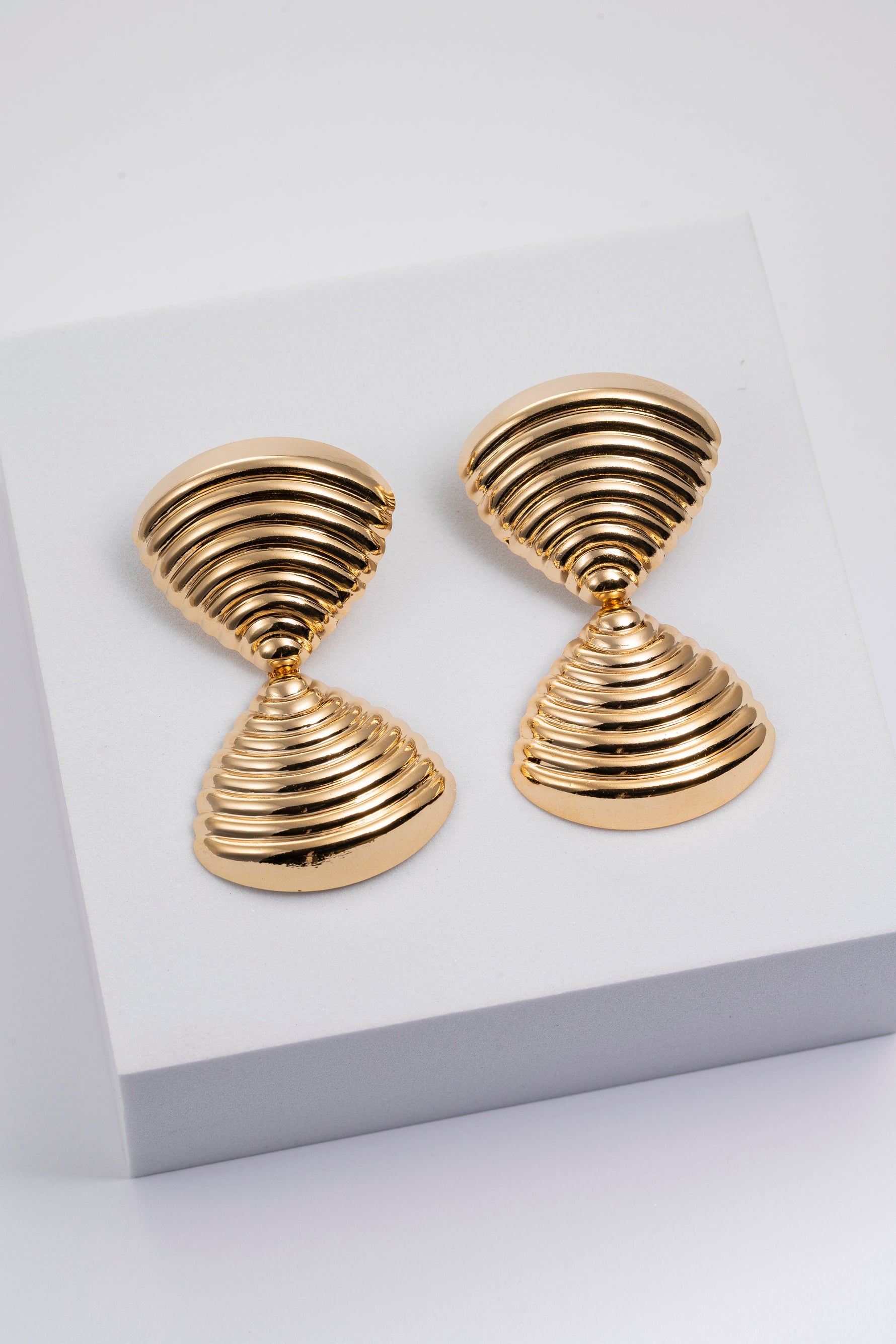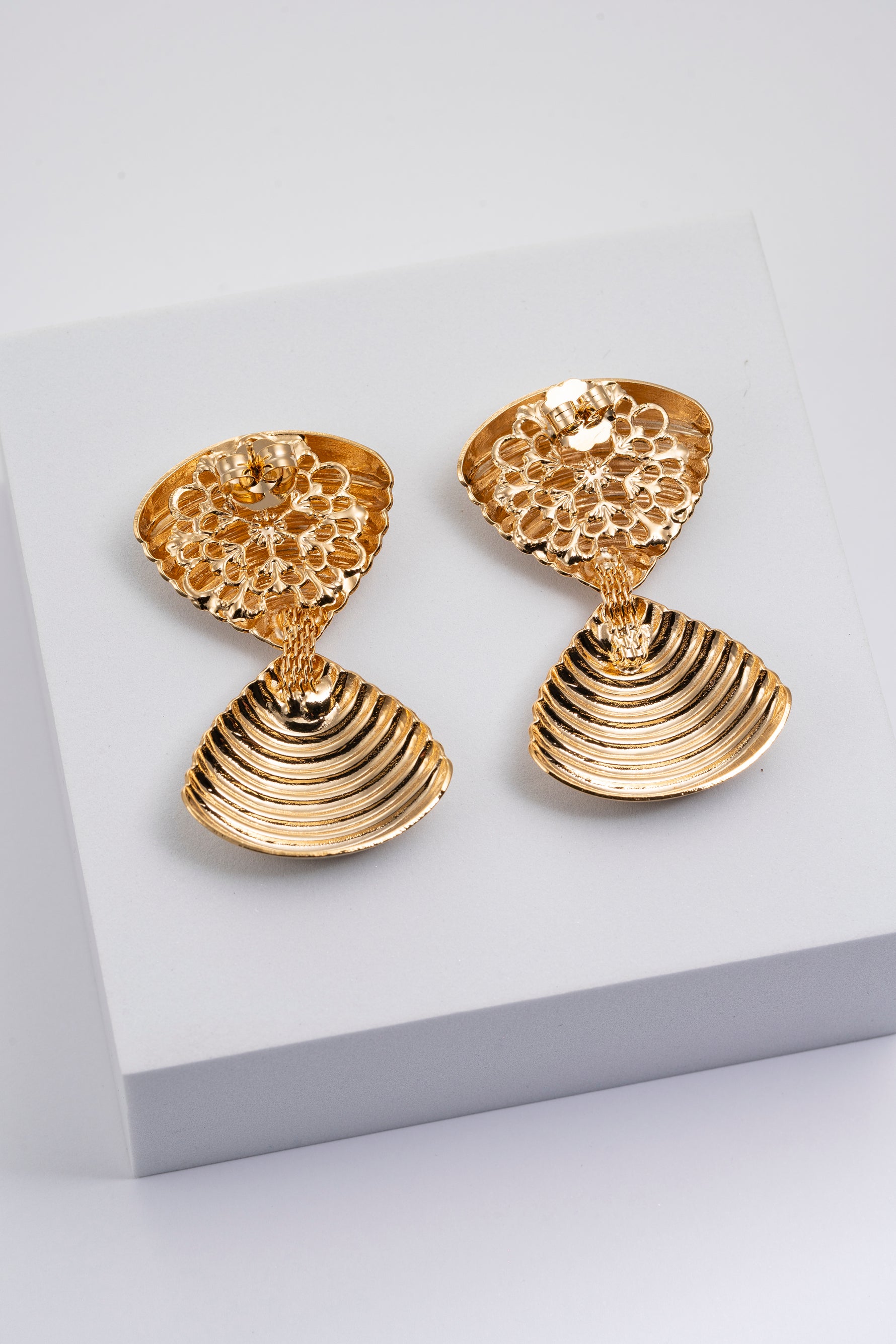 Orecchini dorati scultorei a doppia ventaglio Eos