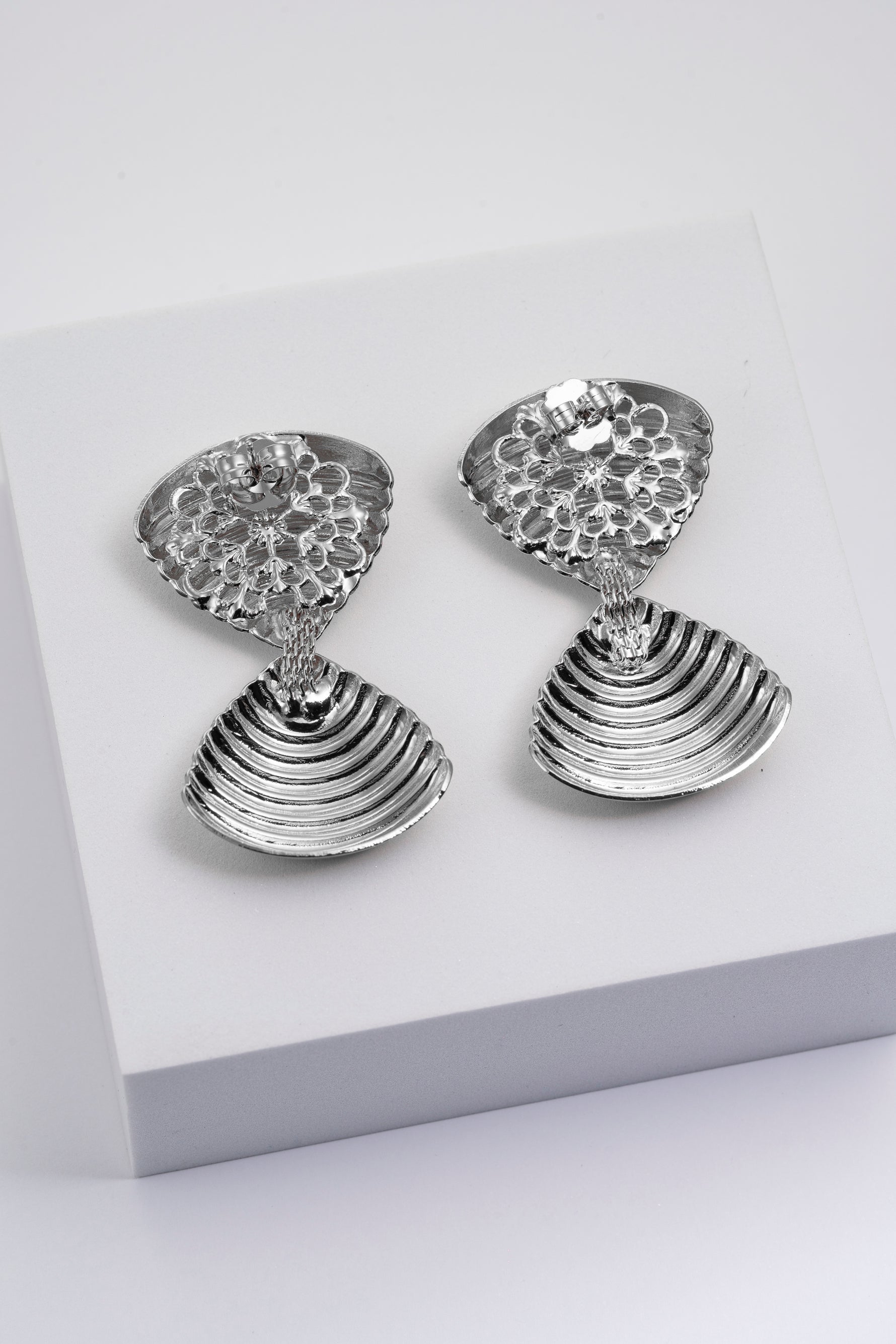 Gli orecchini Eos catturano l’attenzione con il loro design scultoreo e ipnotico. Due elementi a ventaglio in ottone dorato si incontrano in un equilibrio perfetto, creando un effetto che ricorda il ritmo delle onde e lo scorrere del tempo.