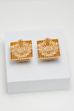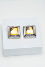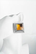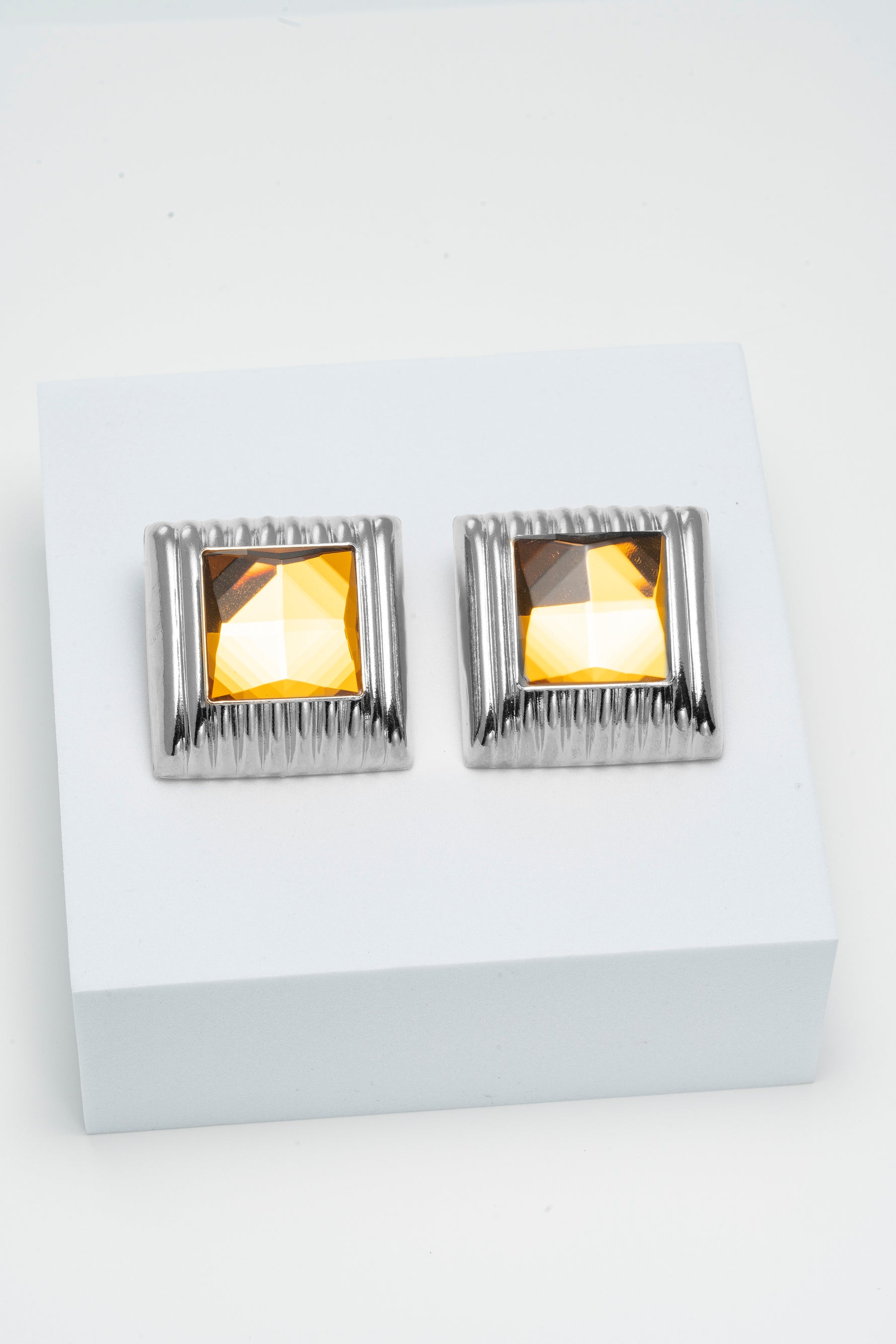 Lasciati avvolgere dalla luce calda dell’ora dorata. Gli Sunset Glint sono orecchini statement dal design audace ma raffinato, caratterizzati da una forma scultorea squadrata e impreziositi da un cristallo sfaccettato color topazio al centro. La montatura placcata oro con finitura a coste richiama l’eleganza vintage, reinterpretata in chiave contemporanea.