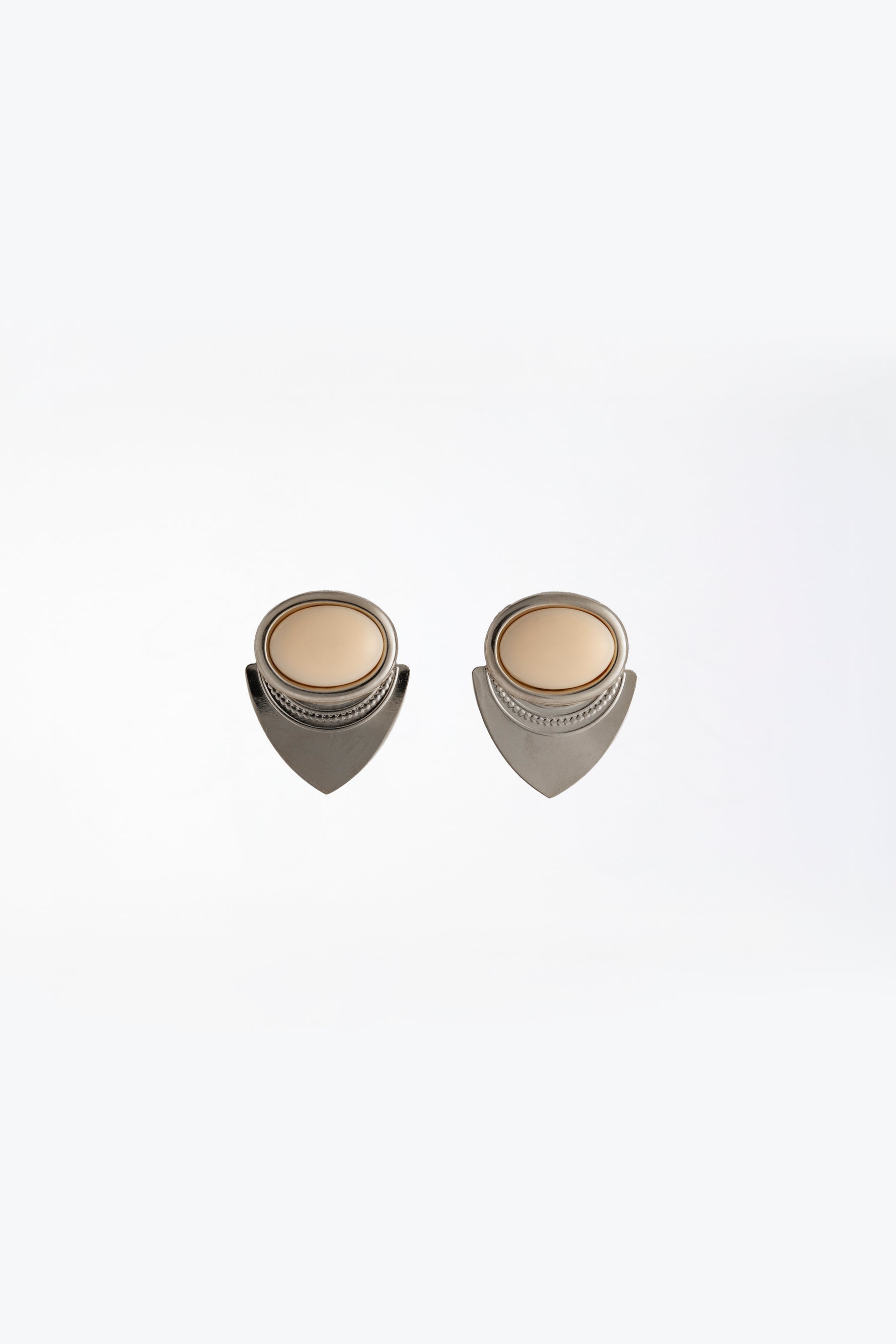 Orecchini Sabbia con Metallo Lavorato e Ovale Cabochon 18x25