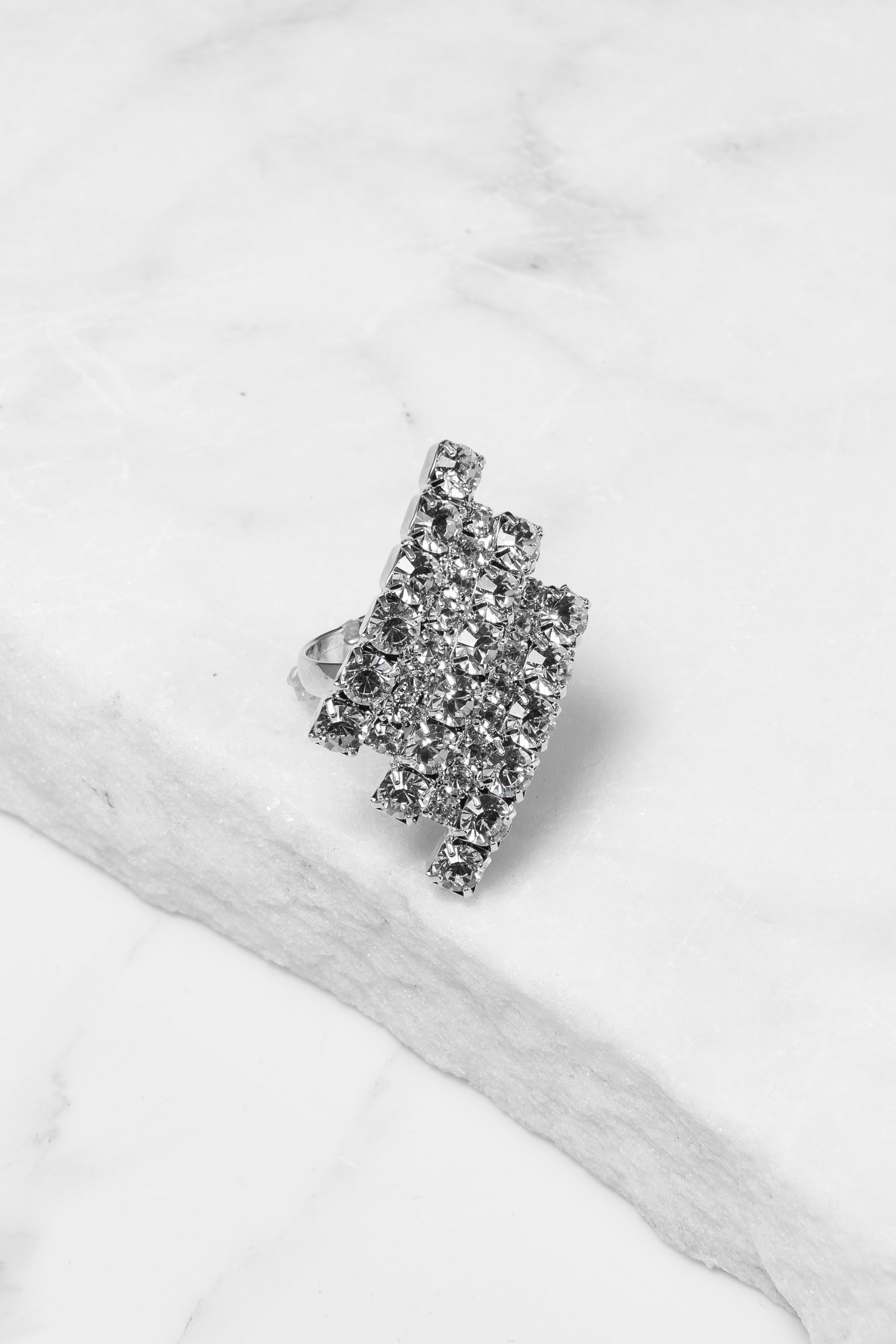 Il modulo rettangolare rivestito di cristalli crea una presenza forte e contemporanea. La base regolabile garantisce comfort e adattabilità.