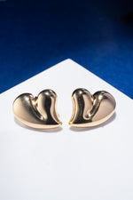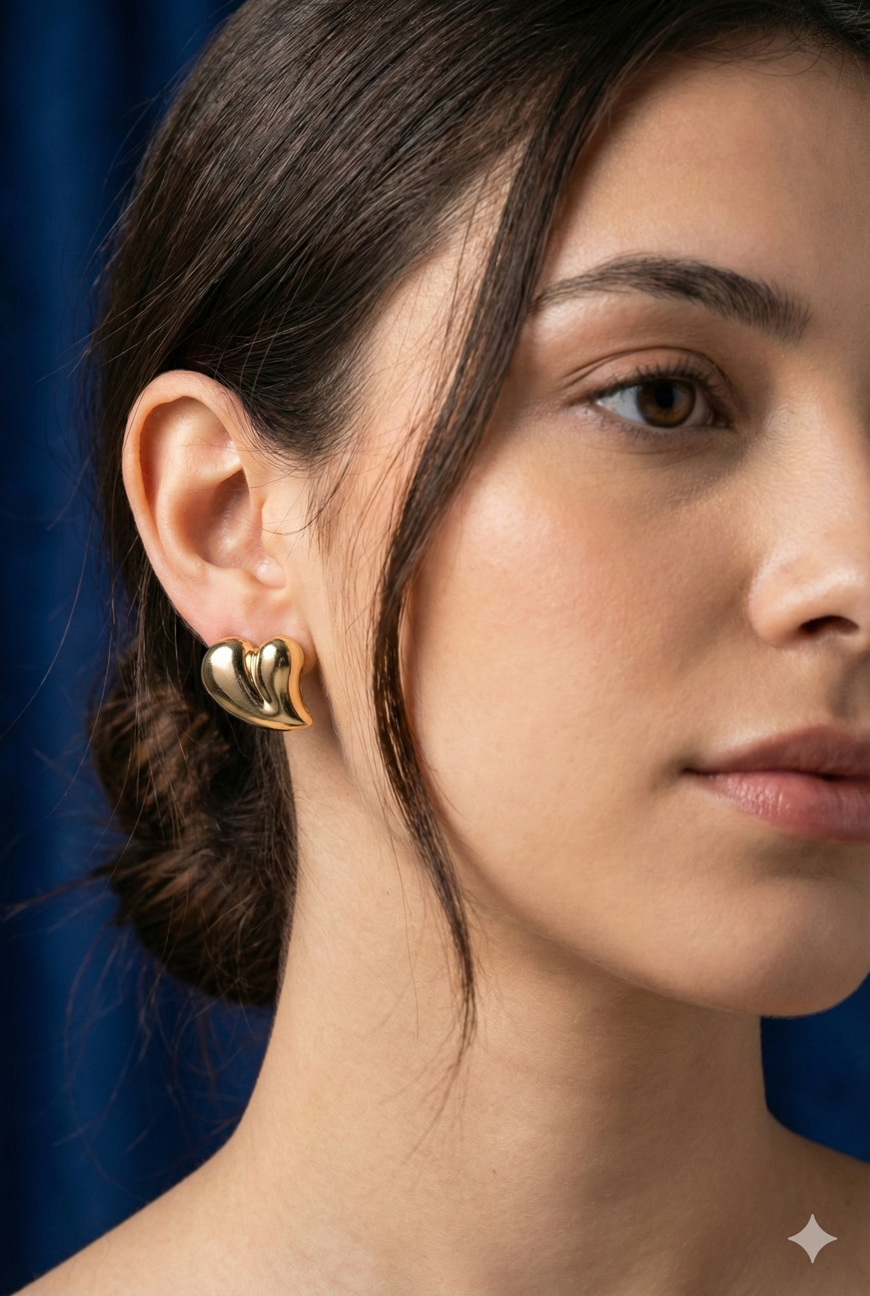 Questi orecchini a lobo in finitura gold presentano un doppio cuore dalle linee morbide e scultoree, con superficie liscia e lucida che riflette la luce con eleganza. Il design è essenziale ma deciso, pensato per valorizzare ogni look con un dettaglio raffinato.
