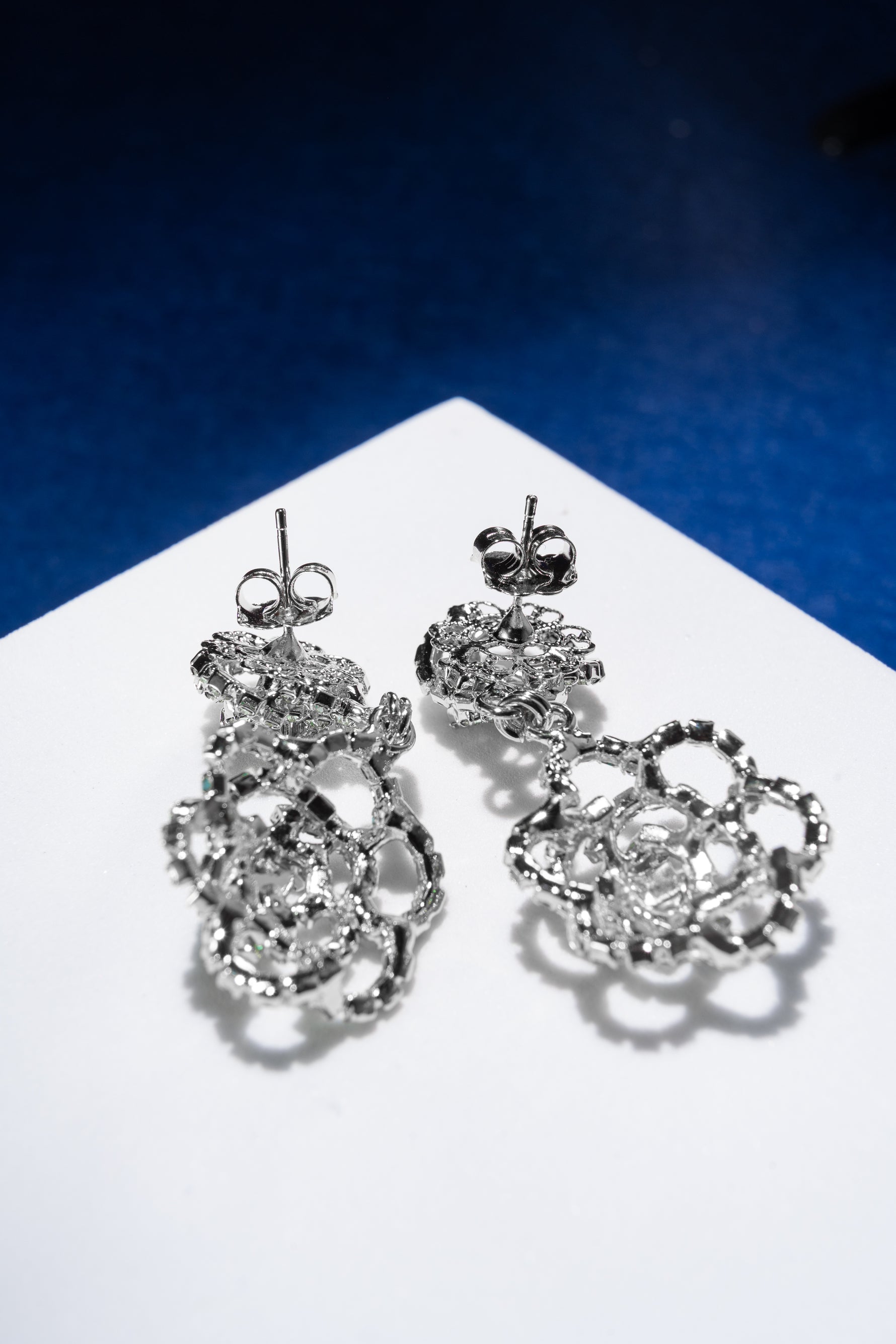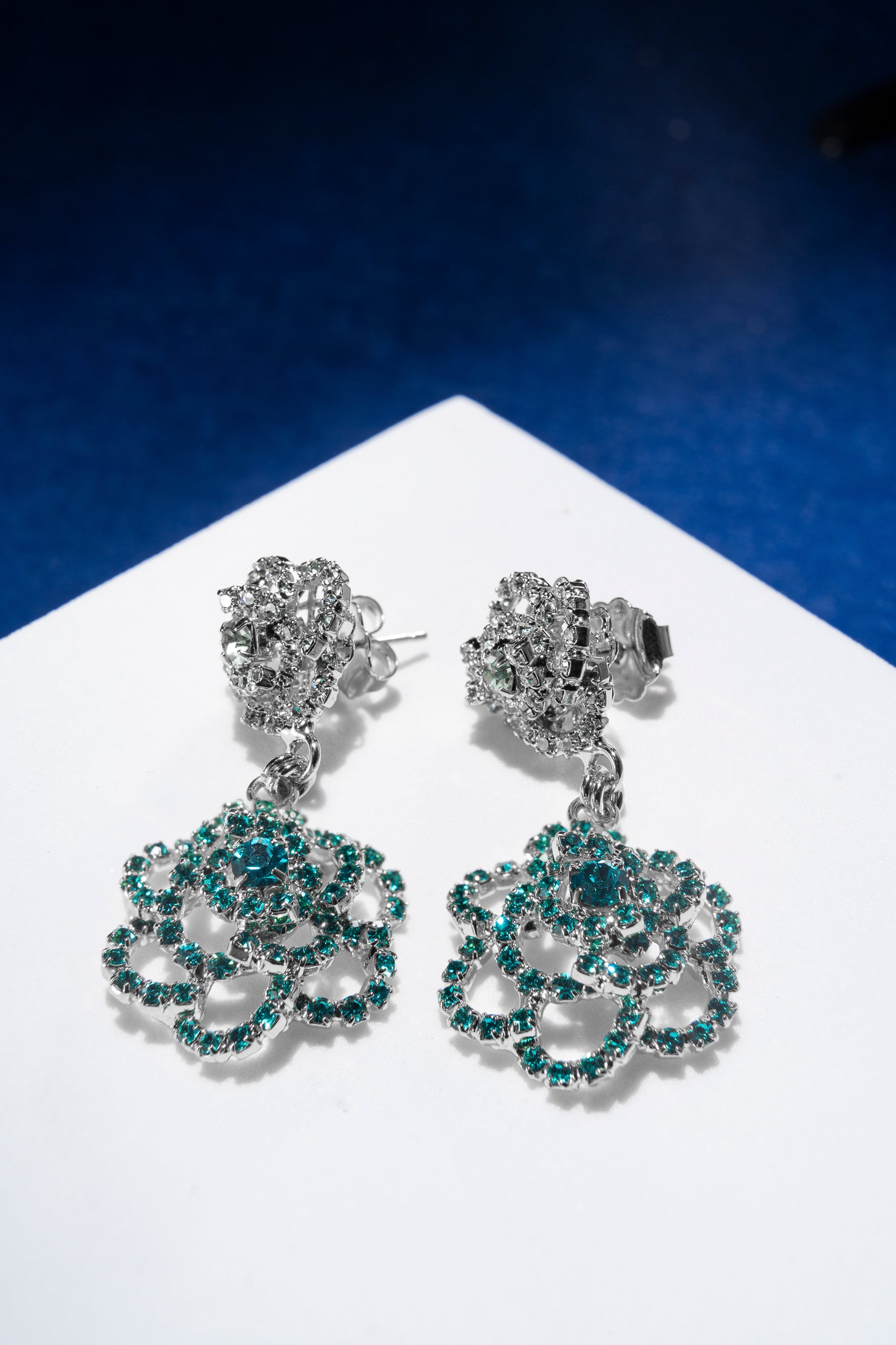 Il movimento leggero valorizza il viso e amplifica la brillantezza dello strass, creando un effetto elegante e dinamico.