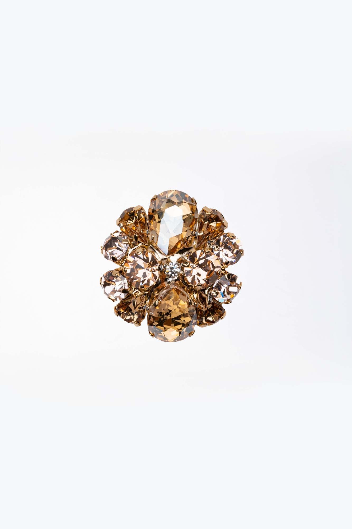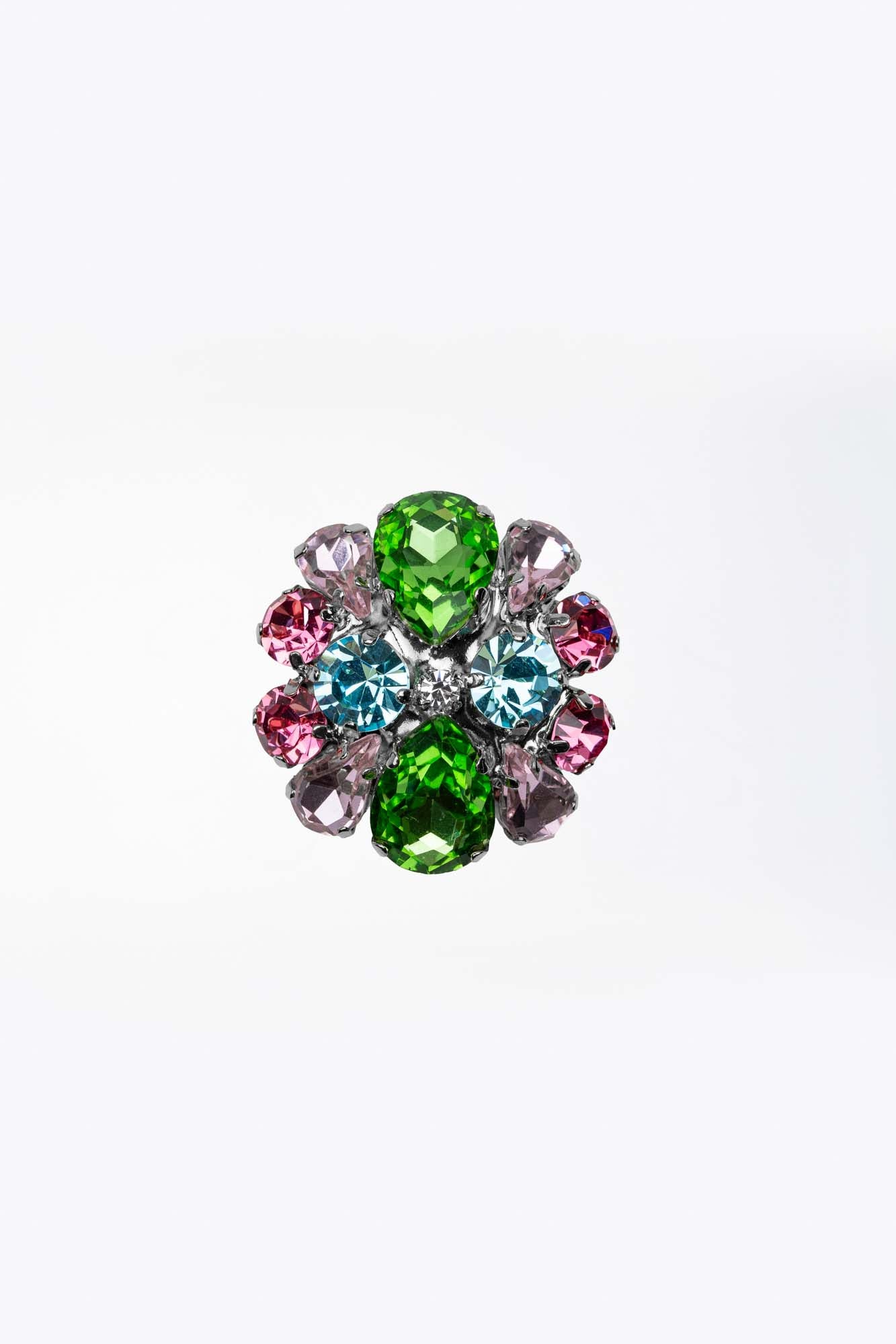- Design: Forma floreale, con un mix di pietre che creano un effetto dinamico e luminoso.