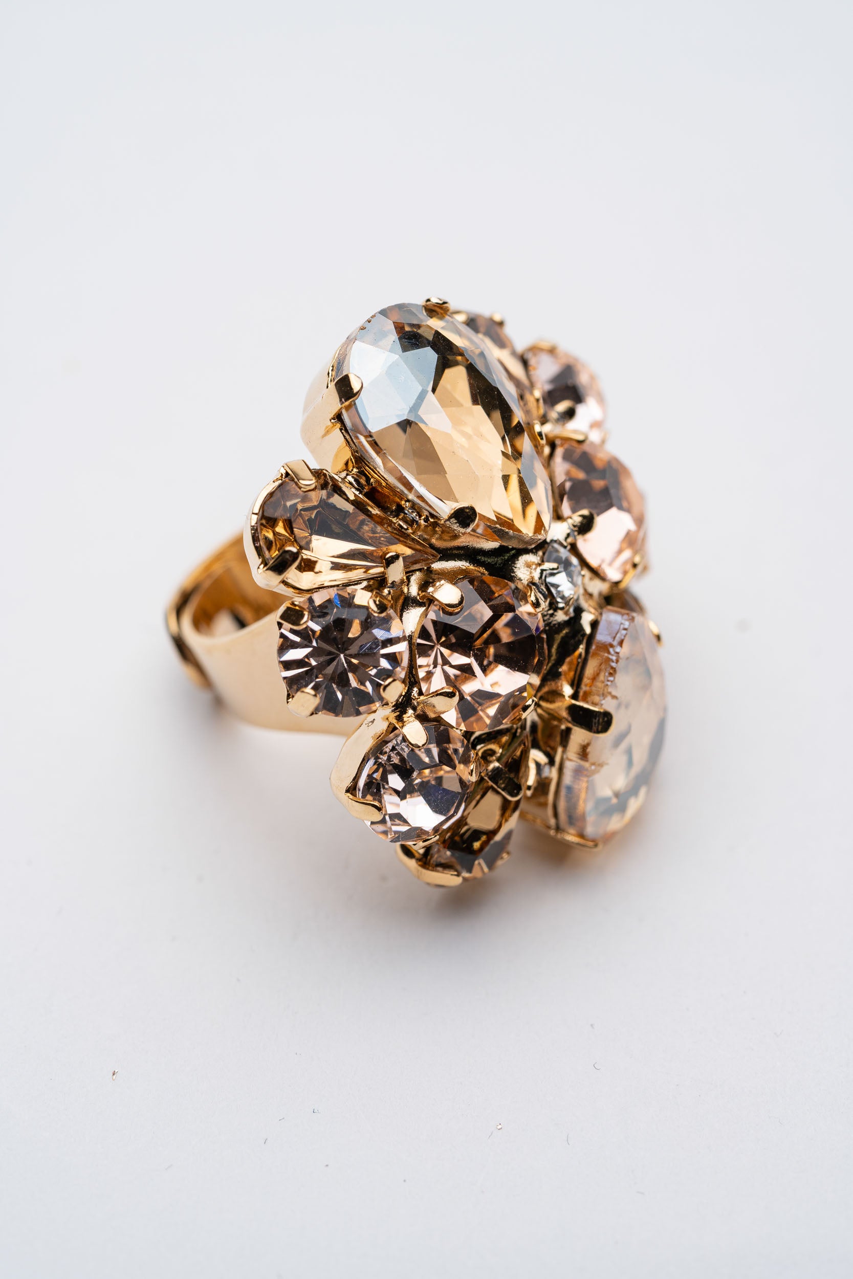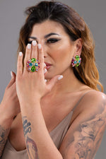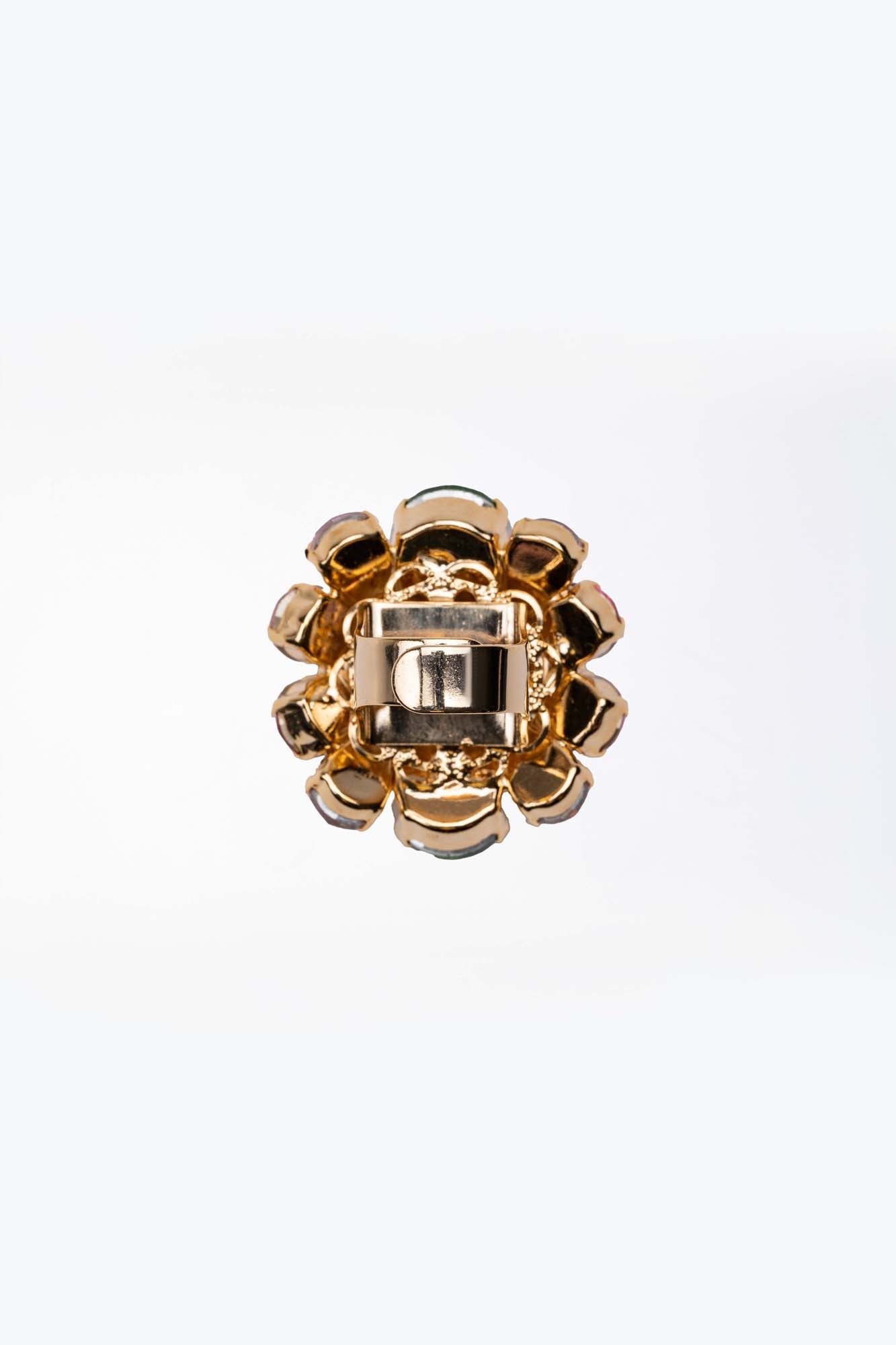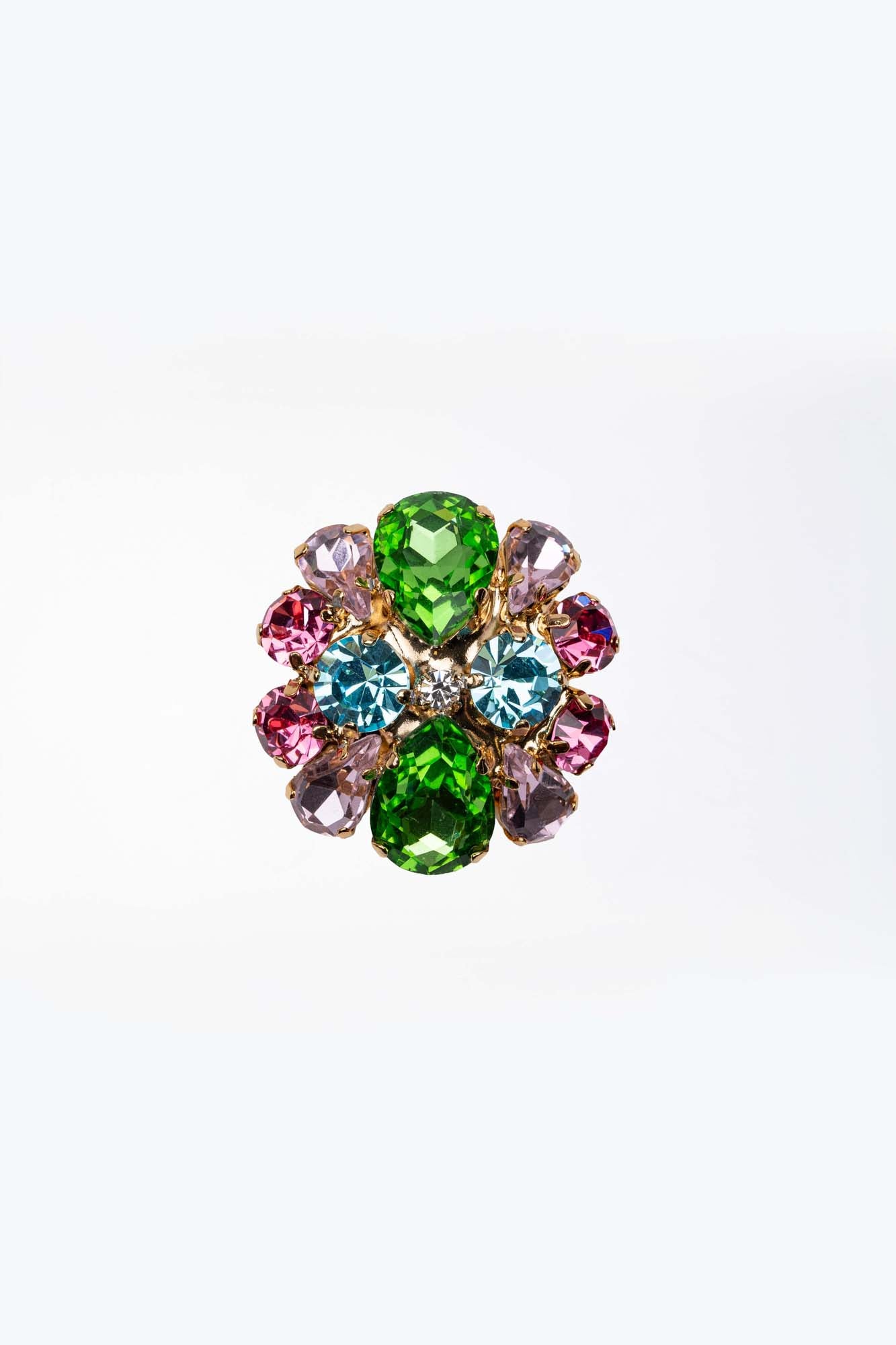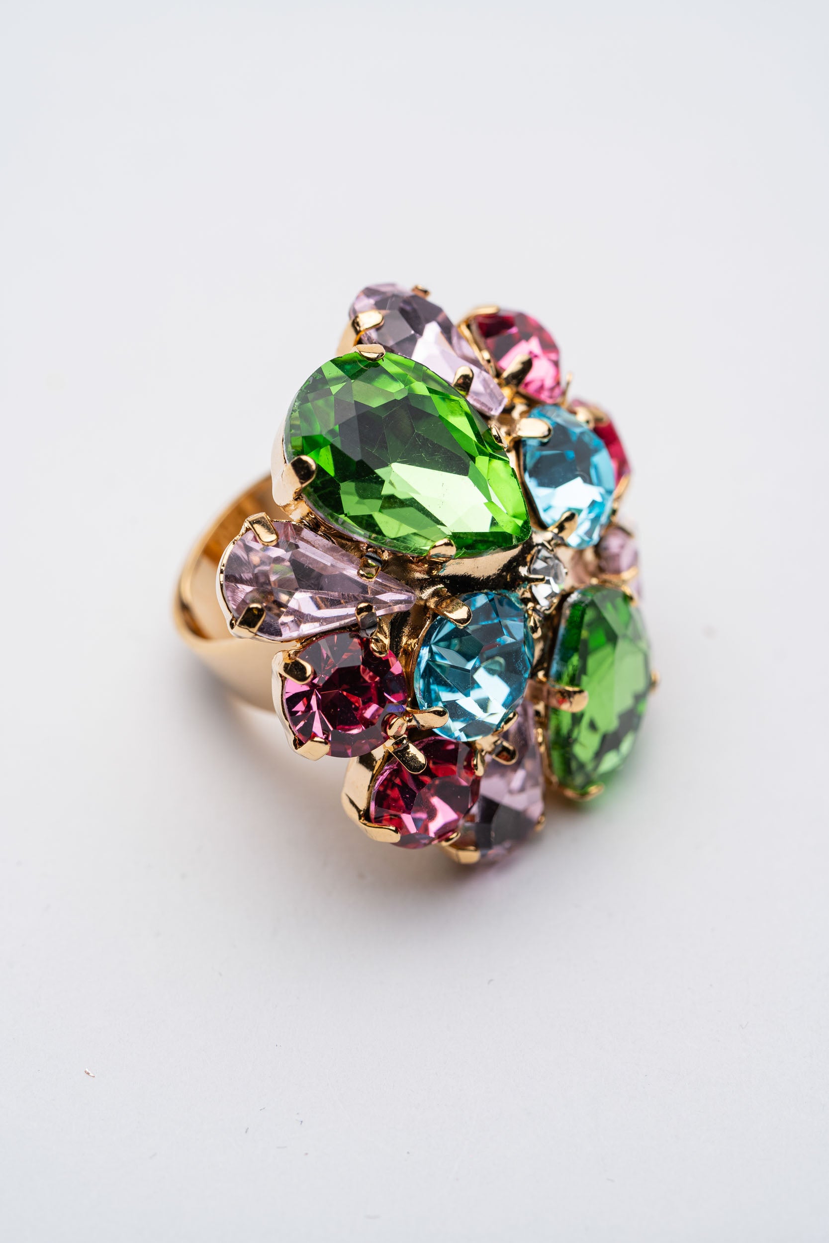 Anello Bouquet di Cristalli multicolore su base dorata con Pietre Preziose