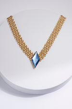 Collana dorata con cristallo blu taglio rombo Blue Diamond
