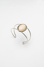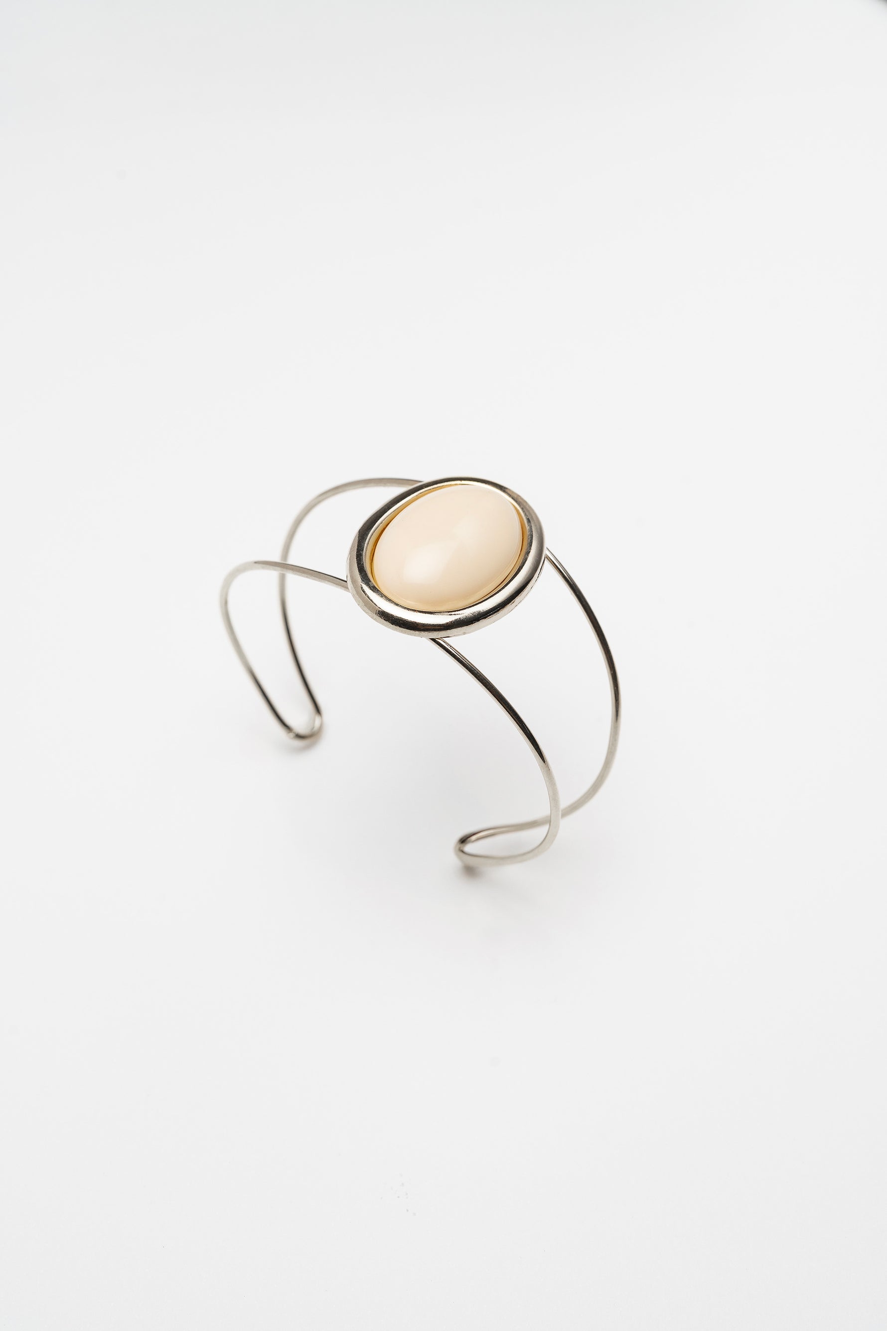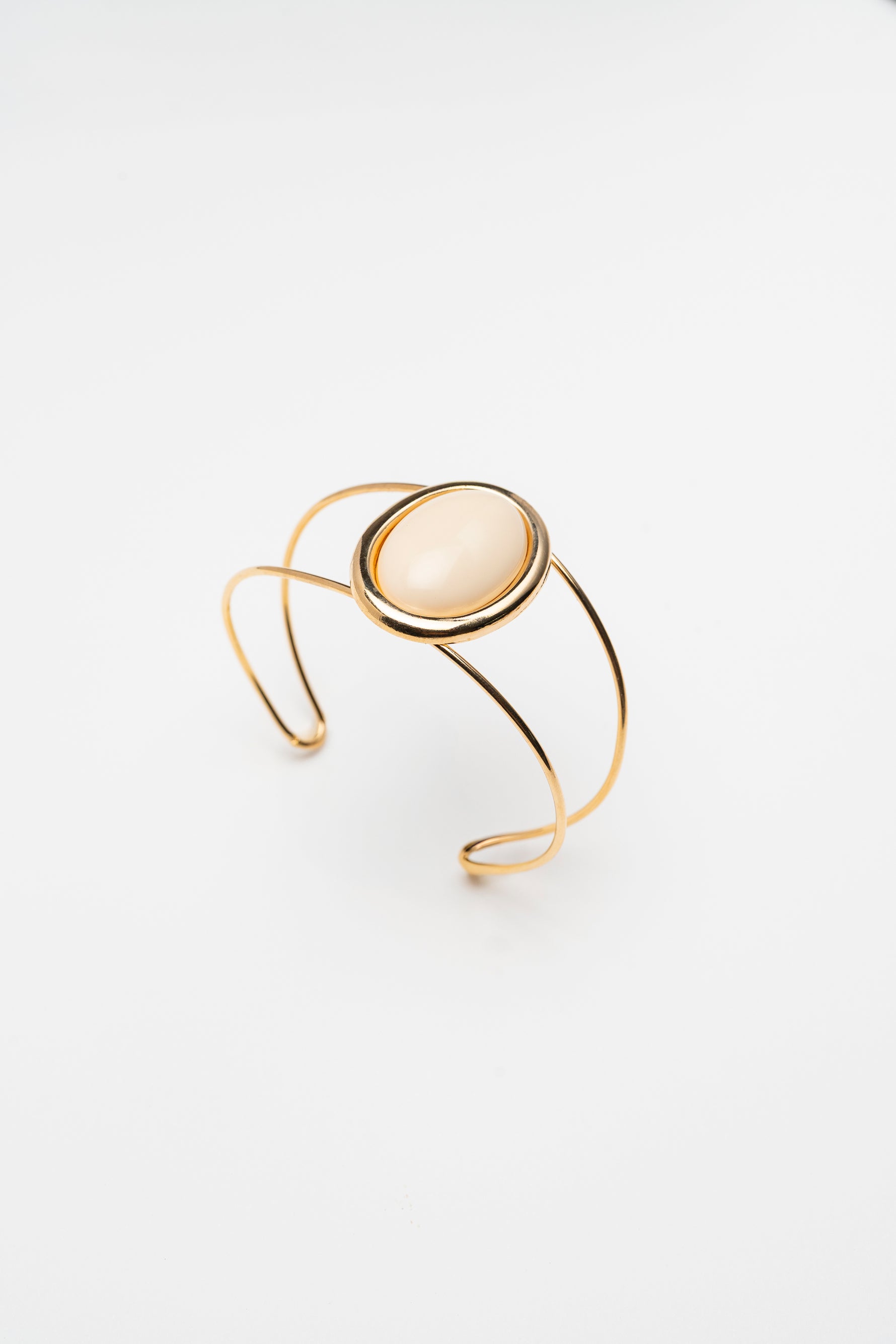 La struttura aperta facilita l’adattamento al polso, offrendo comfort e praticità, mentre l’ovale cabochon dona un dettaglio elegante e distintivo. Ideale per chi desidera un accessorio versatile che aggiunga un tocco di classe e sofisticatezza a ogni outfit.