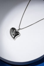 Il pendente a cuore presenta linee morbide e volumi pieni, con superficie liscia effetto specchio che riflette la luce in modo delicato e raffinato. La catena sottile 50cm valorizza il pendente mantenendo equilibrio e leggerezza.