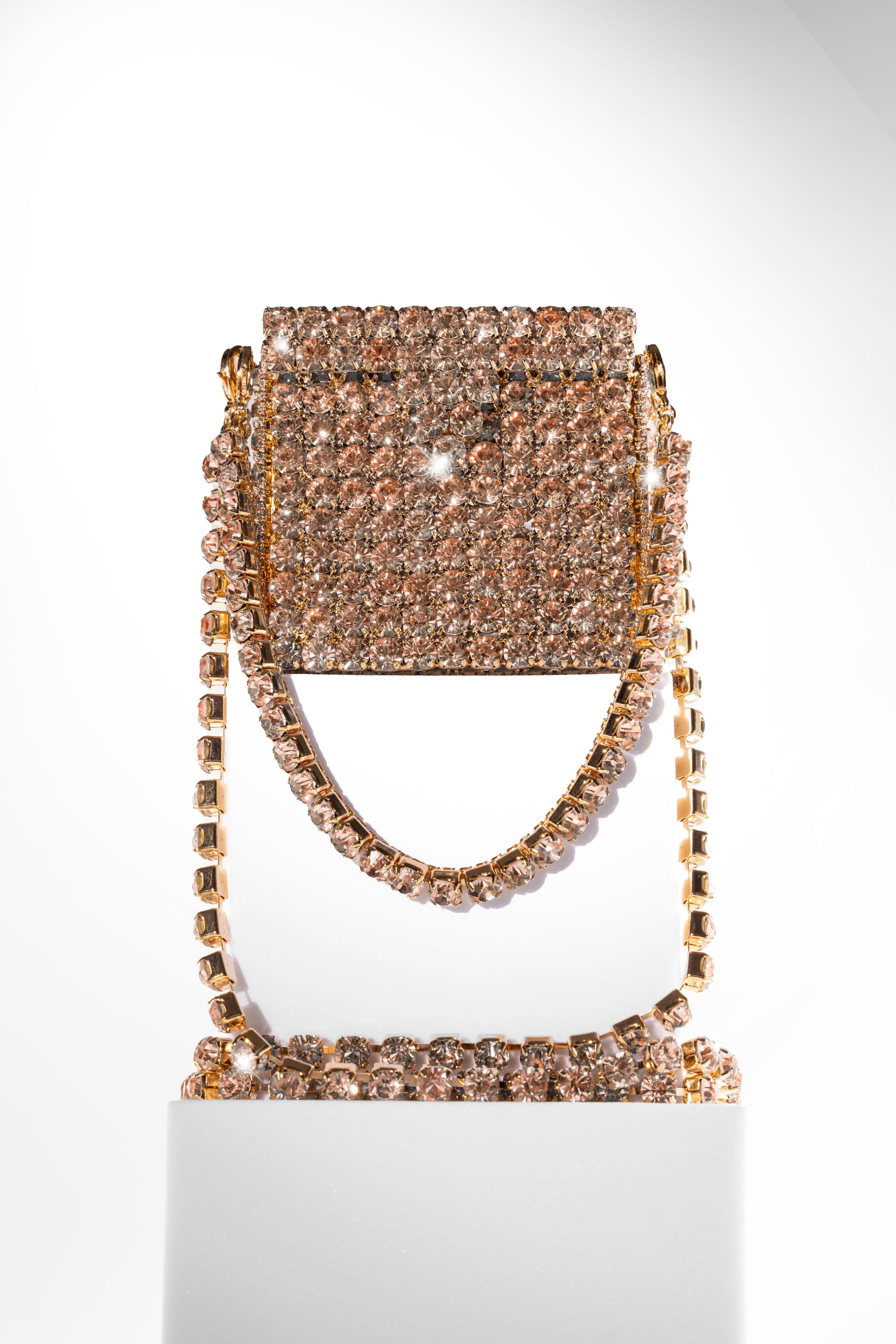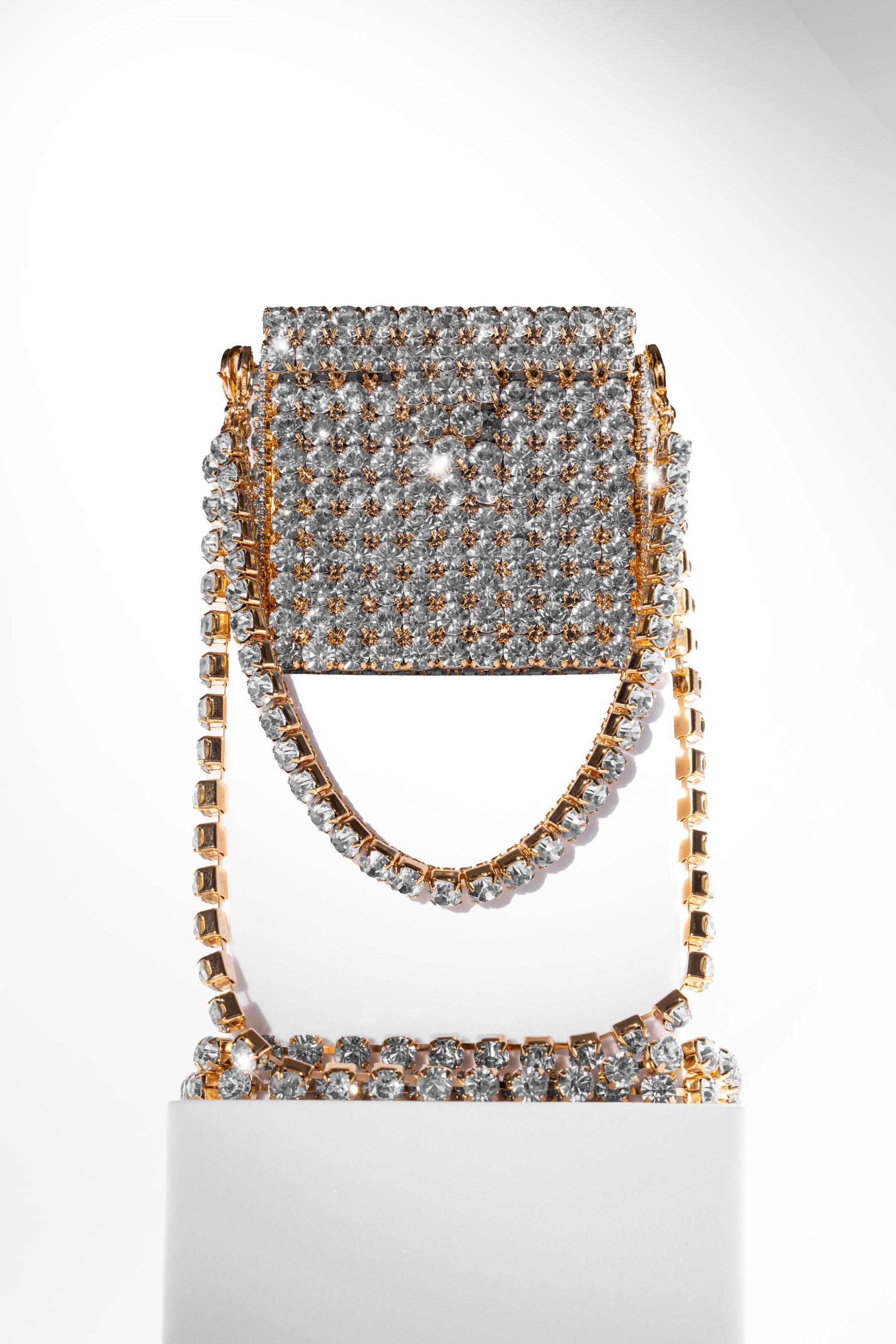 La Dolly Bag Luxe Edition è l'accessorio perfetto per chi ama distinguersi con stile. Caratterizzata da un design compatto e sofisticato, questa borsa è interamente rivestita da una cascata di cristalli scintillanti, incastonati con precisione su una struttura solida ma leggera. L'elegante tracolla a catena, anch'essa impreziosita da dettagli brillanti, permette di indossarla a spalla o a mano, rendendola ideale sia per eventi serali che per occasioni speciali.