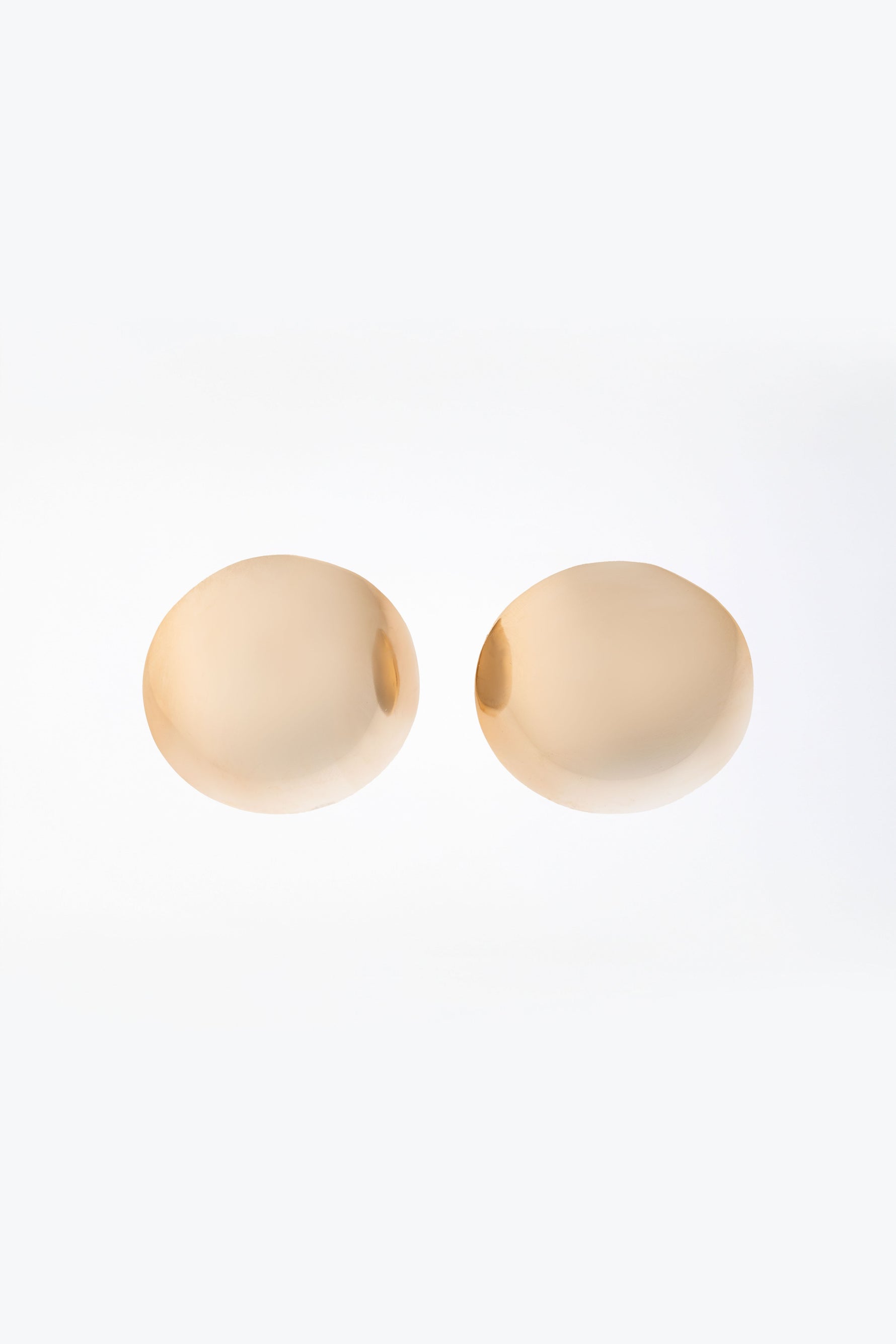 Questi orecchini mini size presentano una silhouette arrotondata e bombata, caratterizzata da una superficie liscia e riflettente che esalta la luminosità del metallo dorato. La loro forma semplice ma d'effetto li rende ideali per essere indossati in ogni occasione, dal look quotidiano a quello più sofisticato. Perfetti per chi ama gli accessori dal gusto vintage e minimalista, assicurano un tocco di eleganza discreta e senza tempo.
