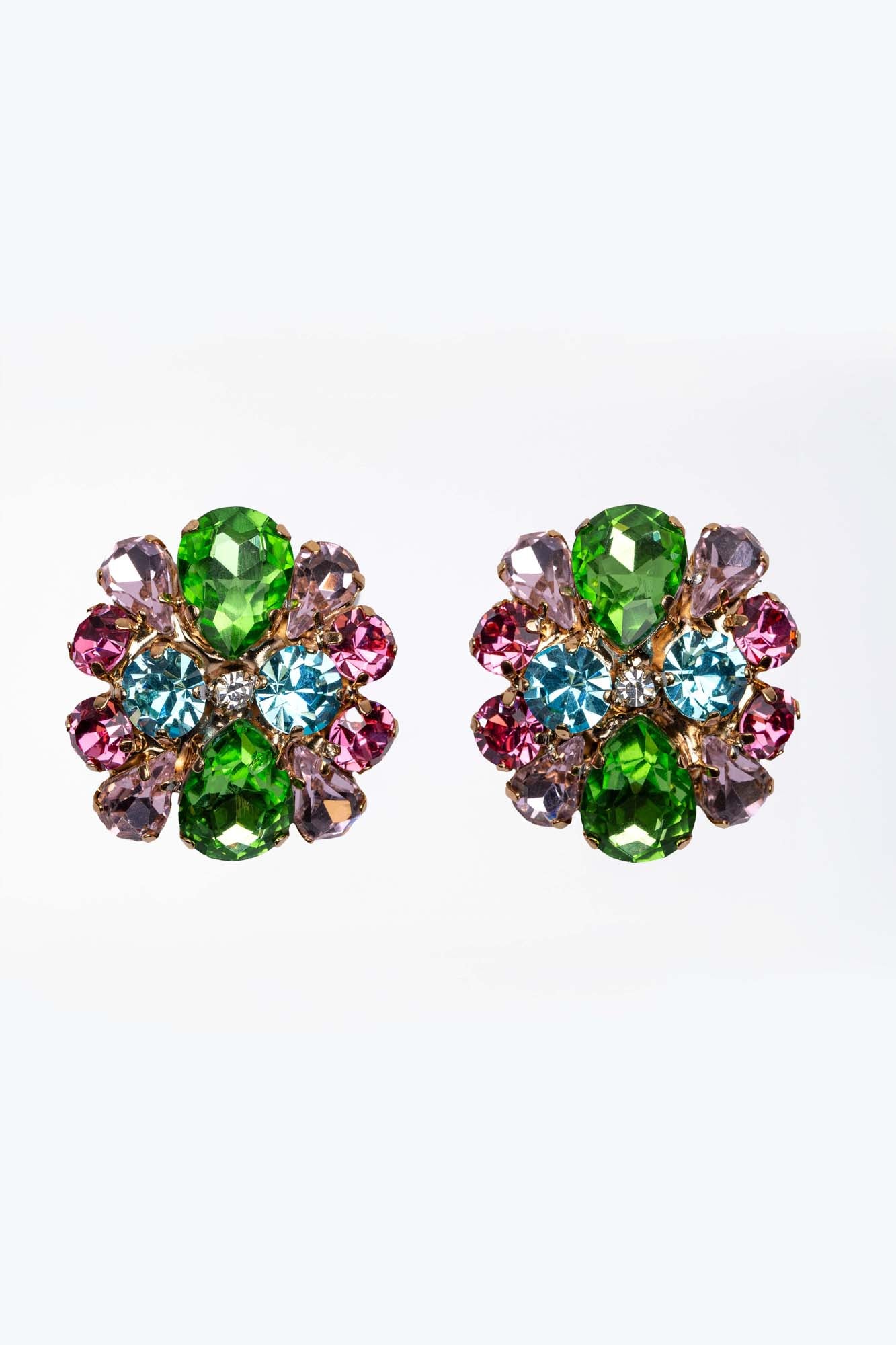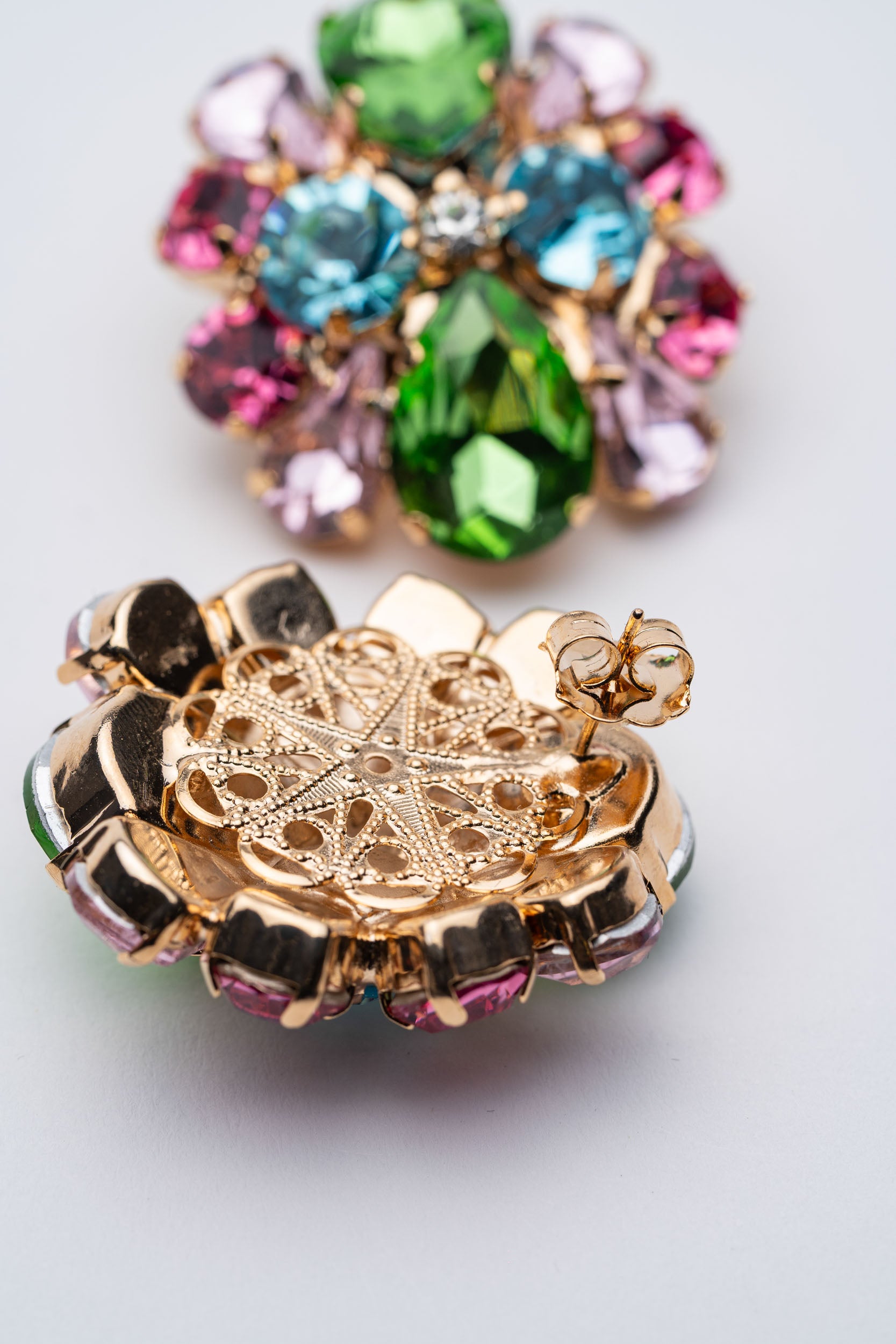 Un design sofisticato che richiama la bellezza di un bouquet fiorito, con cristalli sfaccettati che catturano la luce in ogni movimento. Le delicate sfumature di verde, azzurro, rosa e rosso si intrecciano armoniosamente, creando un effetto brillante e raffinato. La chiusura a perno garantisce una vestibilità comoda e sicura, mentre la struttura leggera permette di indossarli con disinvoltura per tutto il giorno. Un accessorio versatile, perfetto per occasioni speciali o per aggiungere un dettaglio di classe al look quotidiano.