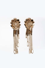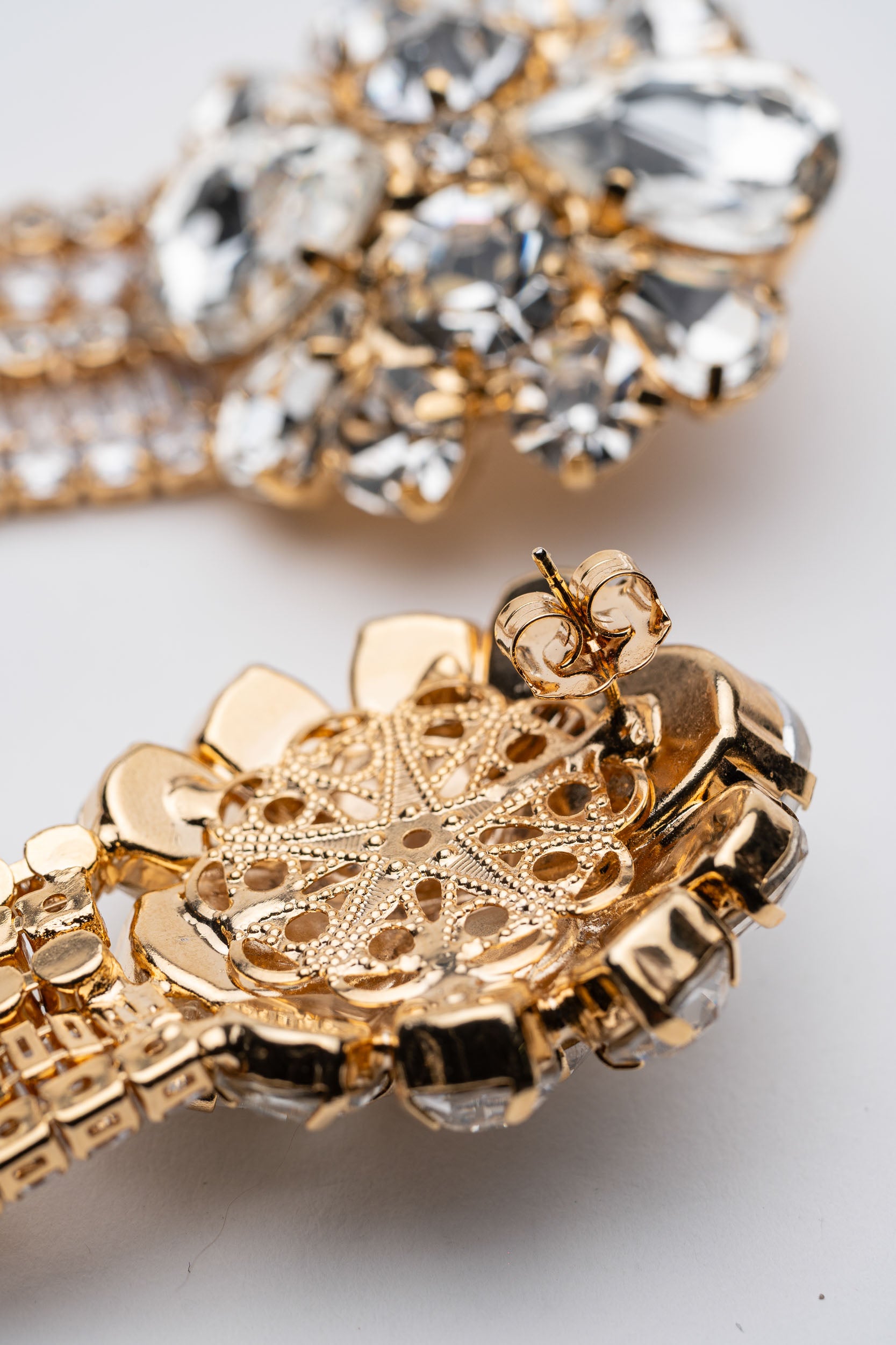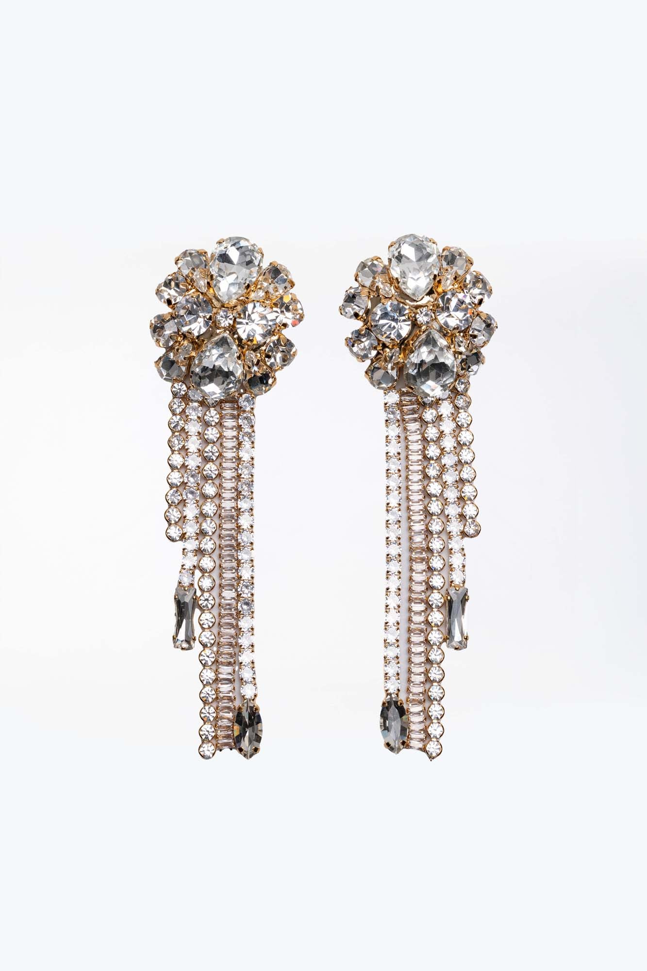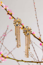 Orecchini Cascata di Luce con Cristalli e Dettagli Dorati