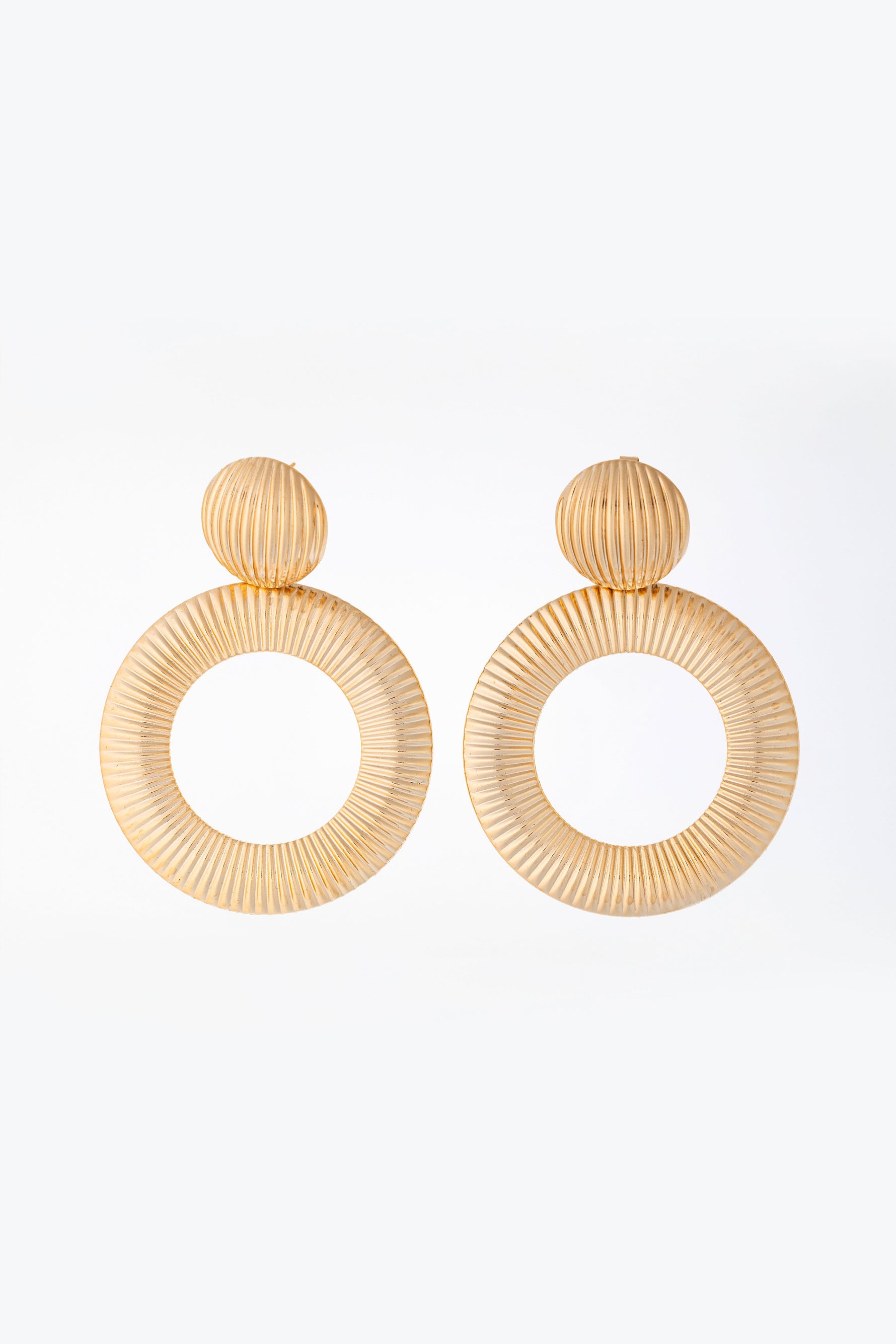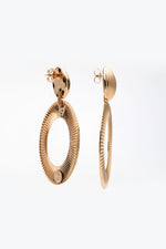 Orecchini pendenti oversize con un design geometrico e scanalature eleganti. Realizzati in ottone anallergico free nickel, con un effetto tridimensionale che dona carattere e luminosità a ogni look.