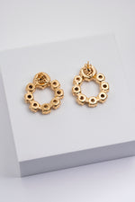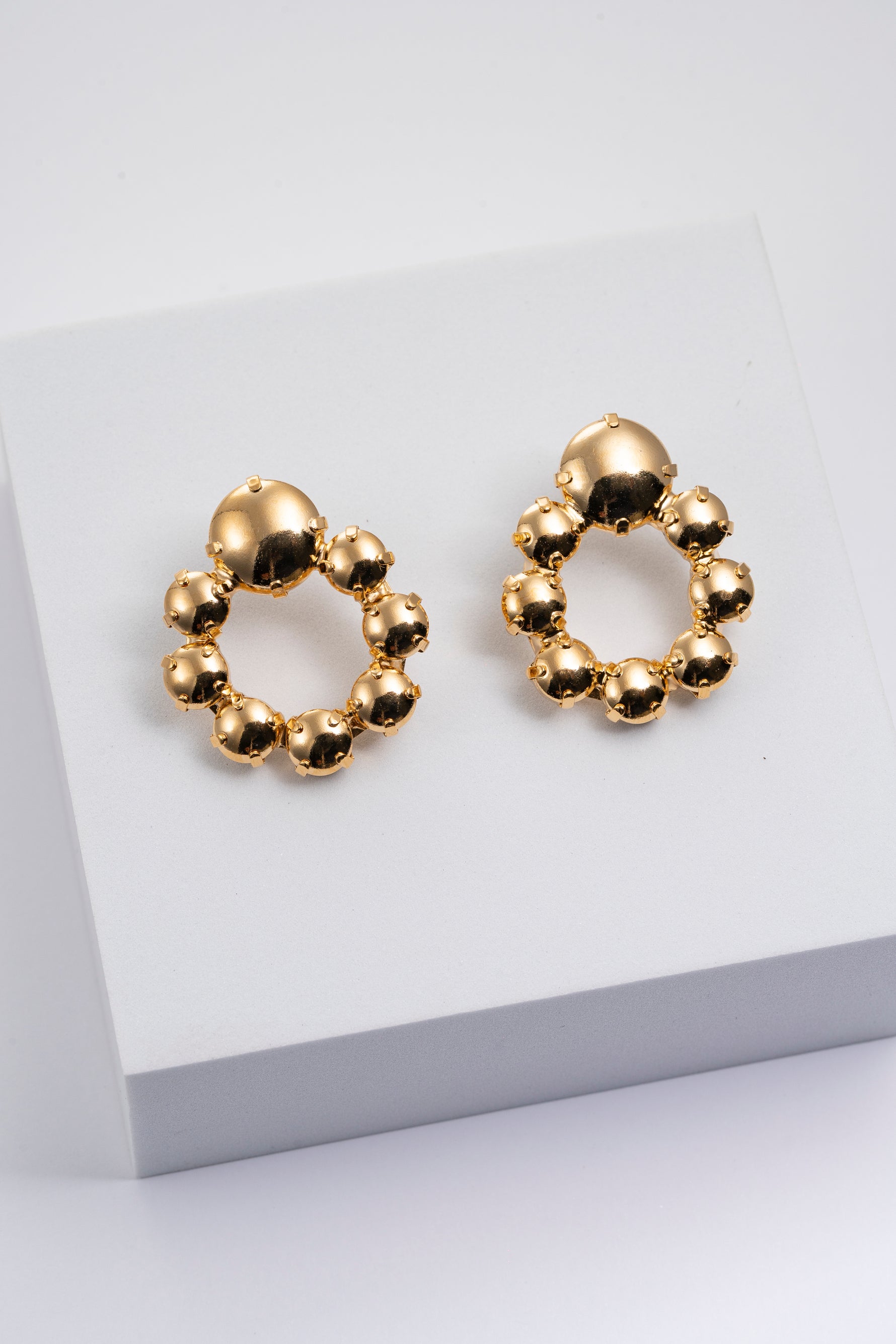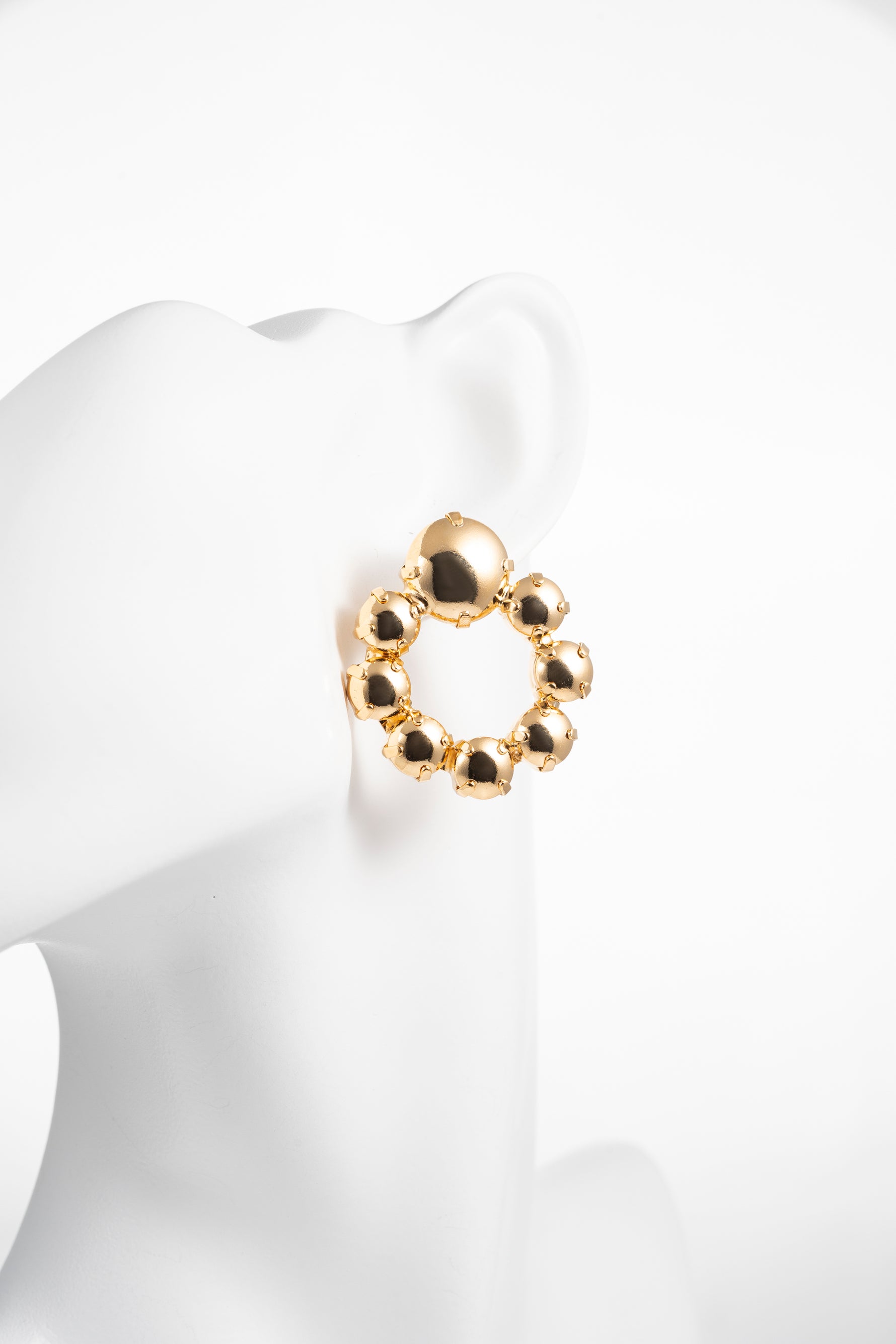Gli orecchini Orbis incarnano armonia e movimento, con un design che richiama la perfezione del cerchio e la luminosità delle sfere dorate. Ogni elemento riflette la luce creando un effetto brillante e sofisticato, ideale per valorizzare qualsiasi outfit.