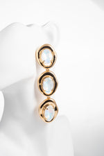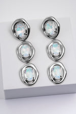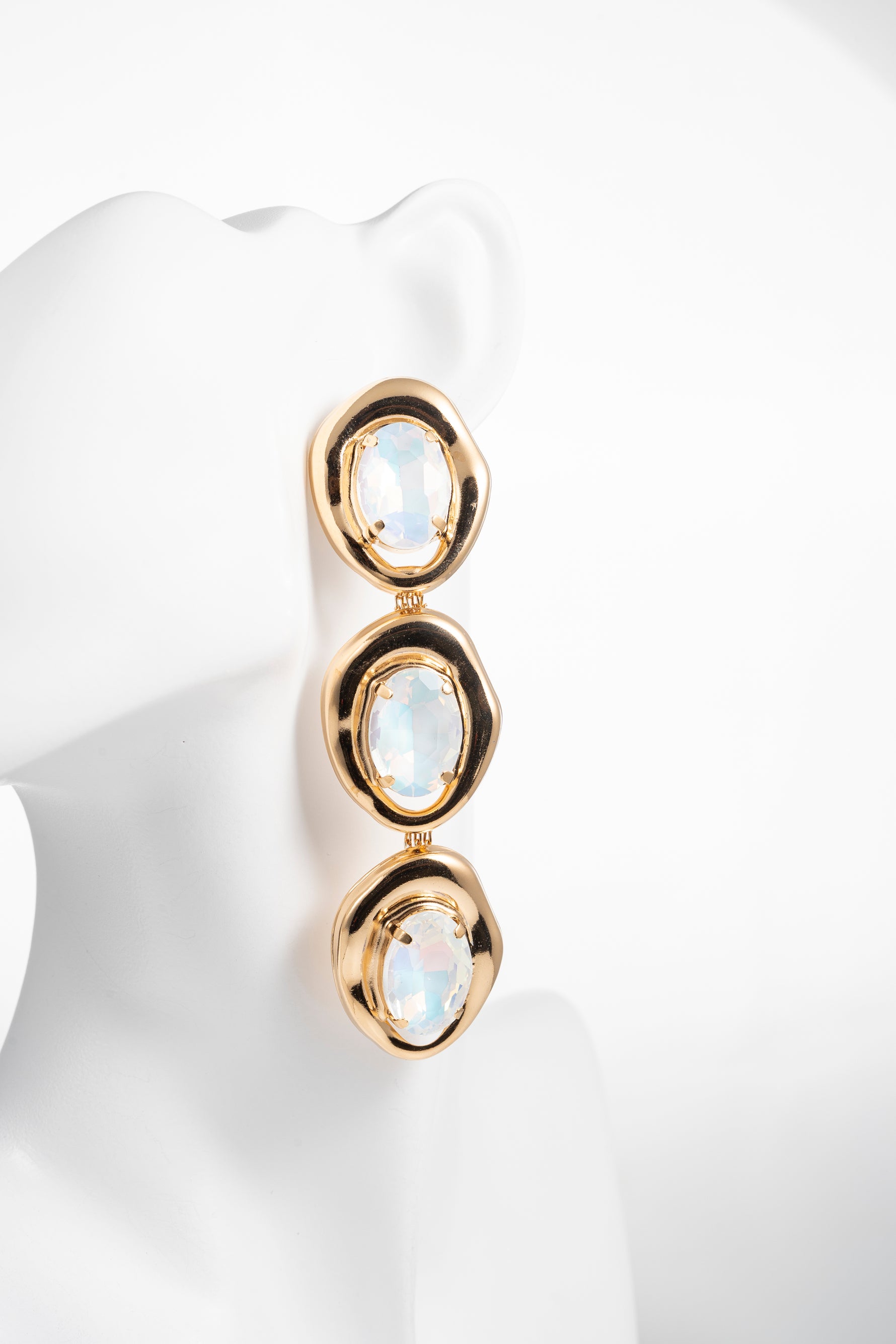 Gli orecchini Eira catturano la magia della luce invernale grazie alle gemme cangianti incastonate in una struttura dorata dal profilo morbido e organico. Le pietre riflettono sfumature opalescenti che ricordano i bagliori del ghiaccio sotto il sole, rendendo ogni movimento unico e luminoso.