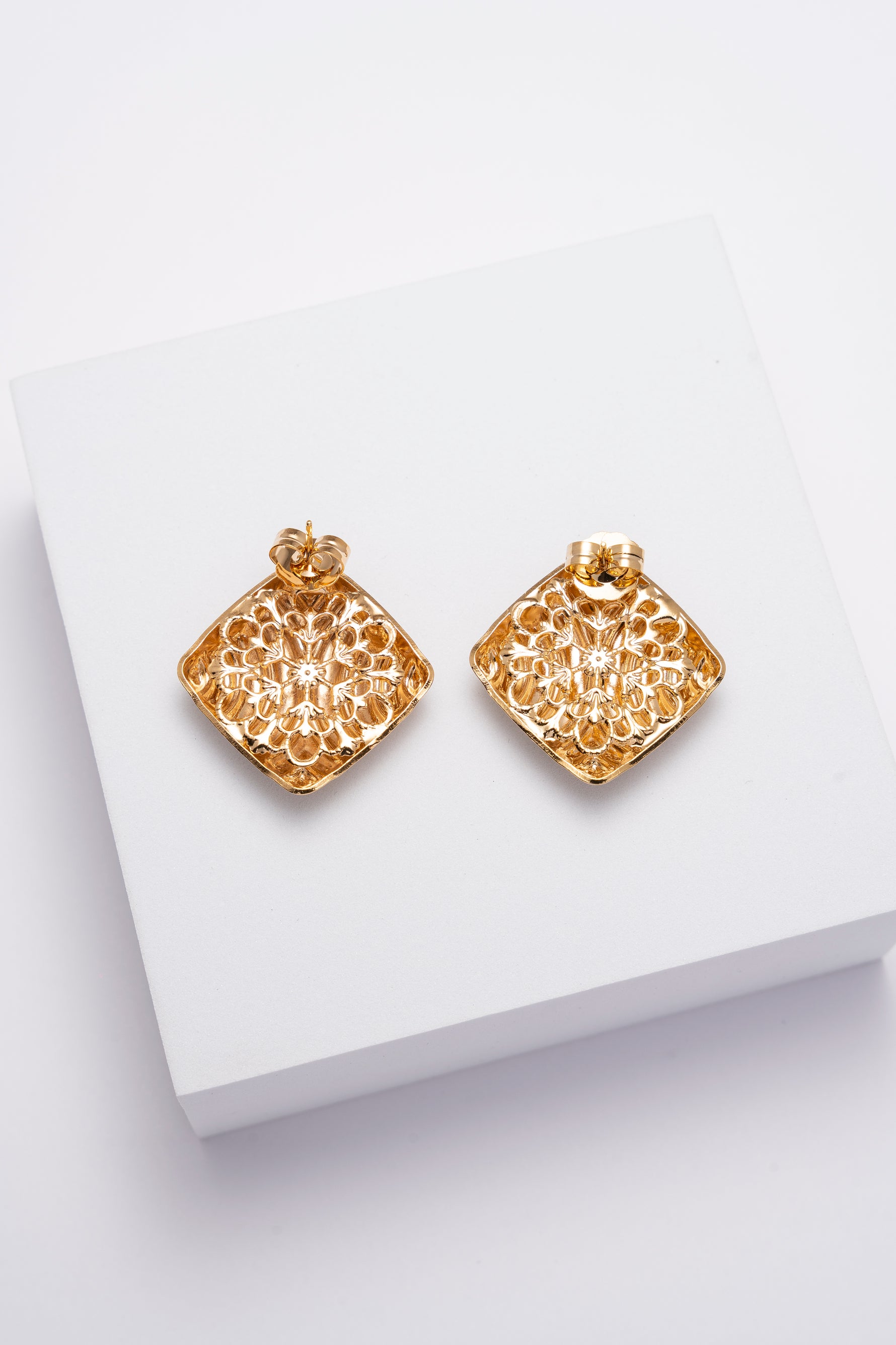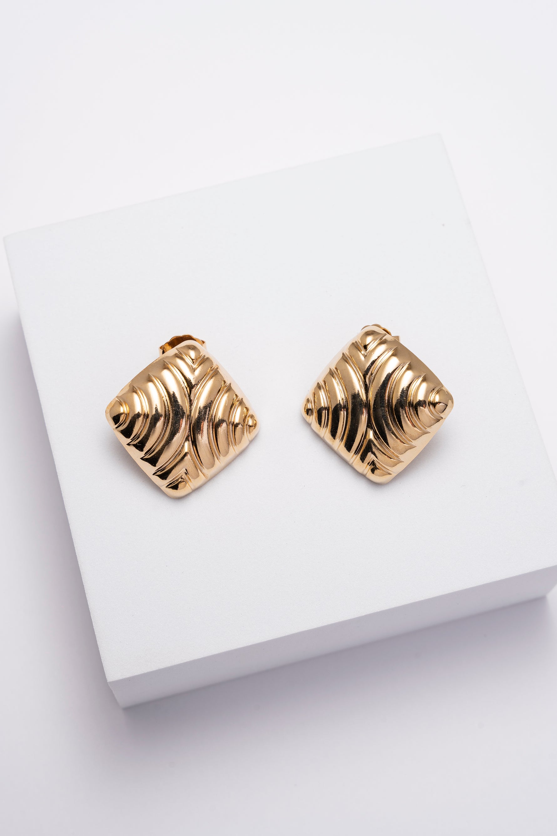 Un equilibrio perfetto tra forma e luce. Gli orecchini Capri reinterpretano la geometria classica del quadrato con profili morbidi e una superficie dorata attraversata da sinuose onde scolpite. Un design che cattura lo sguardo e riflette la luce con eleganza, ideale per aggiungere personalità e raffinatezza a ogni look.
