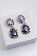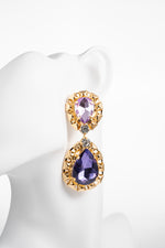 Orecchini Pendenti con Cristalli Viola e Dettagli Dorati Gocce Barocche
