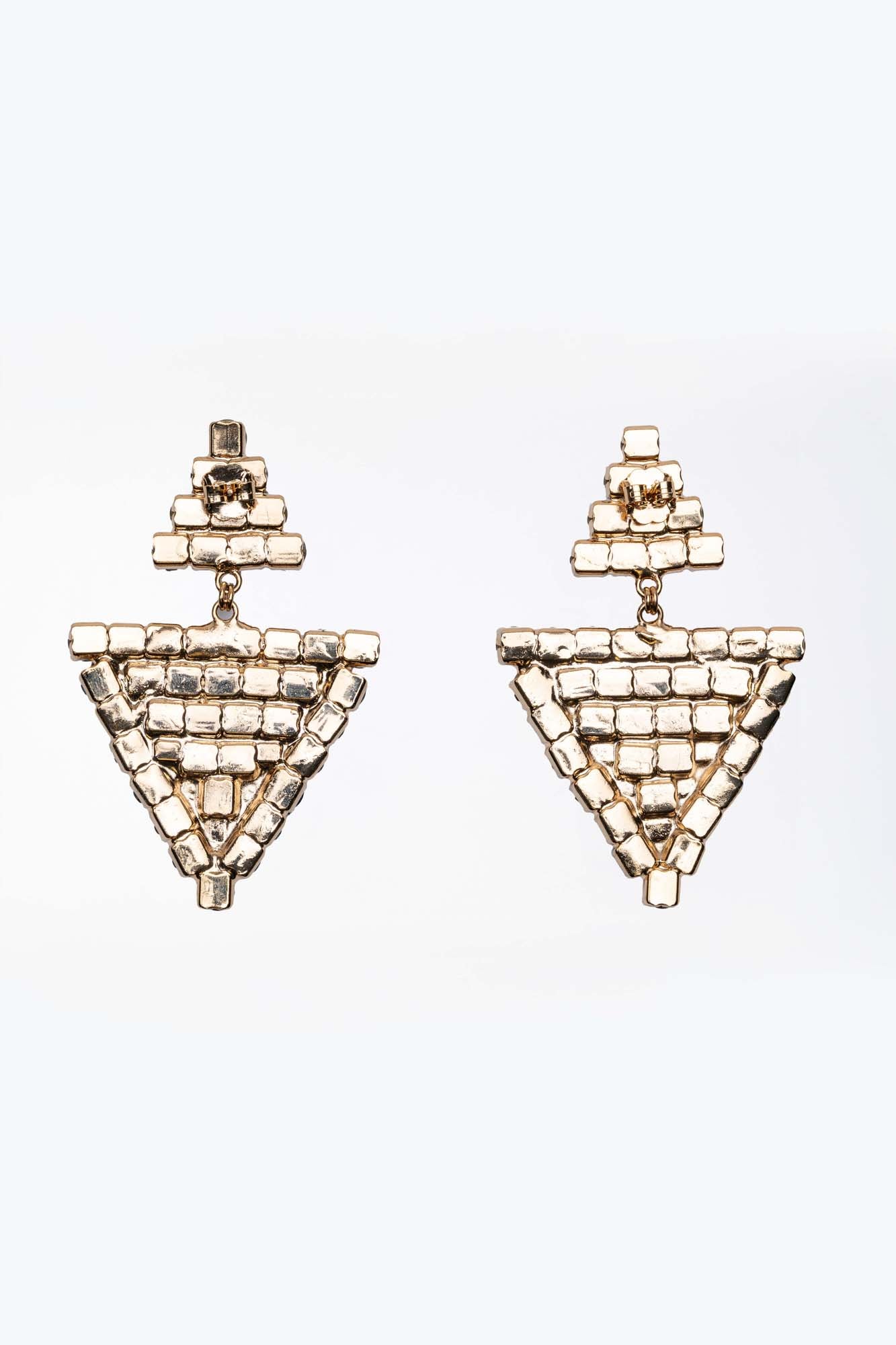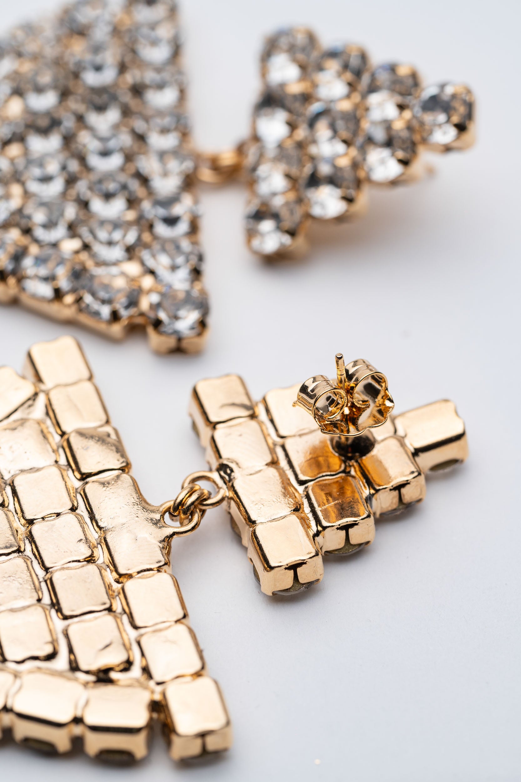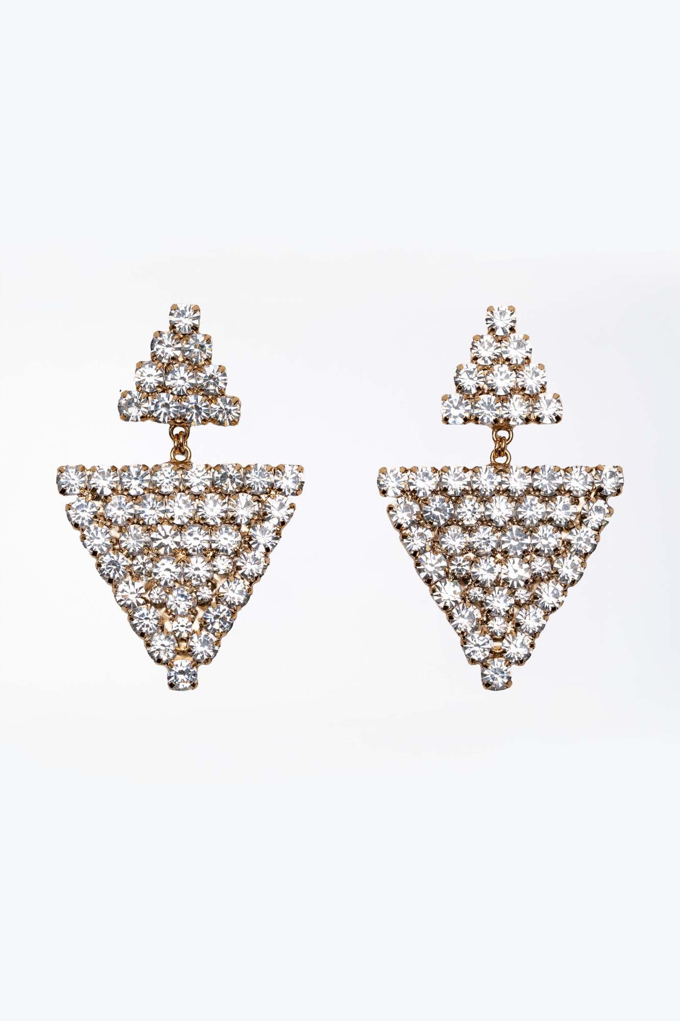 Orecchini Triangolo di Cristallo con Cristalli e Dettagli Dorati